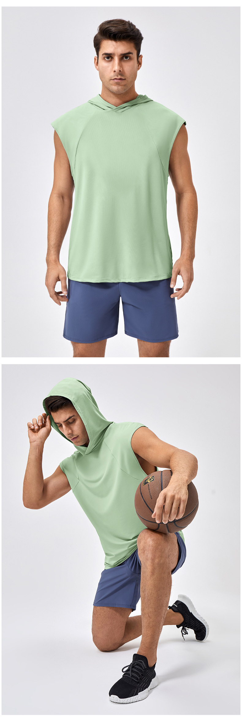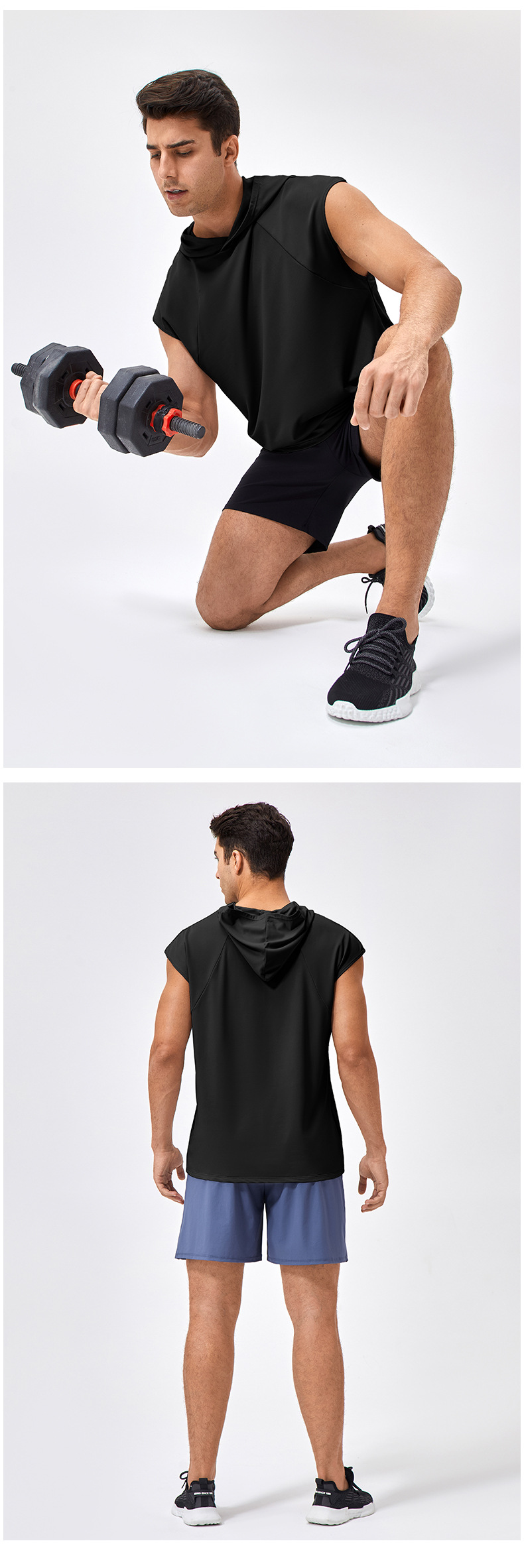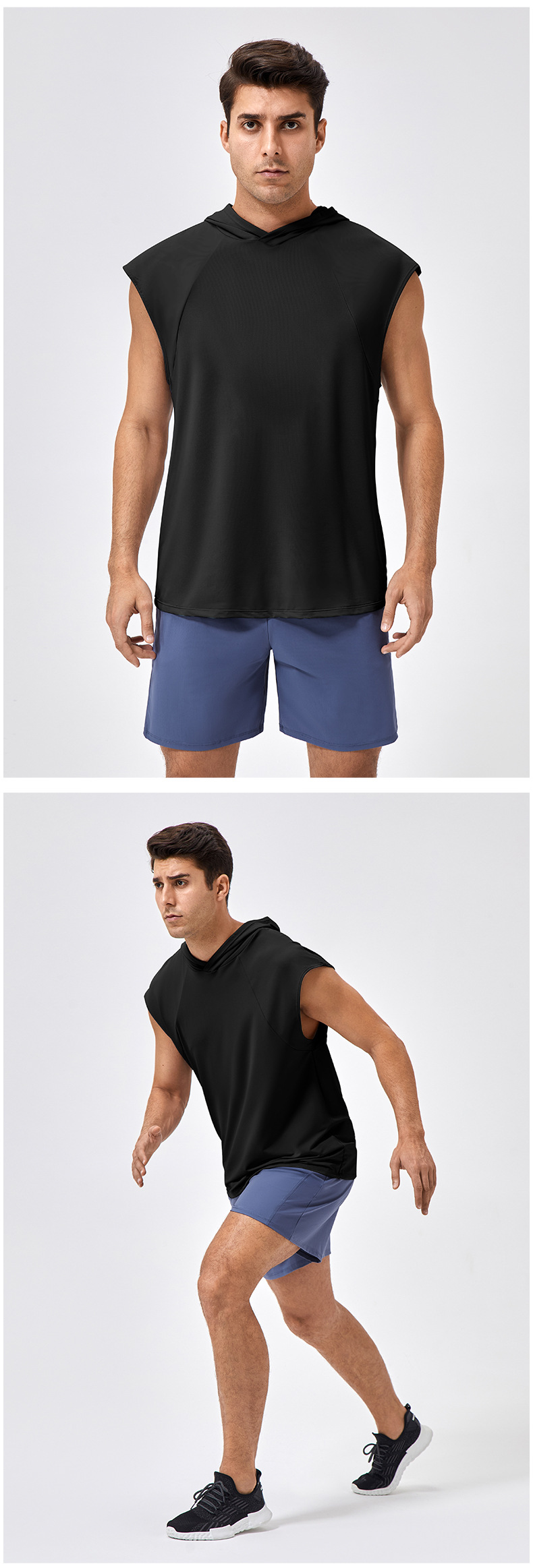 유럽과 미국의 넓은 어깨 스포츠 조끼 남자의 느슨한 빠른 건조 농구 스포츠 달리기 최고 후드 피트니스 조끼 41116스토어 가기
