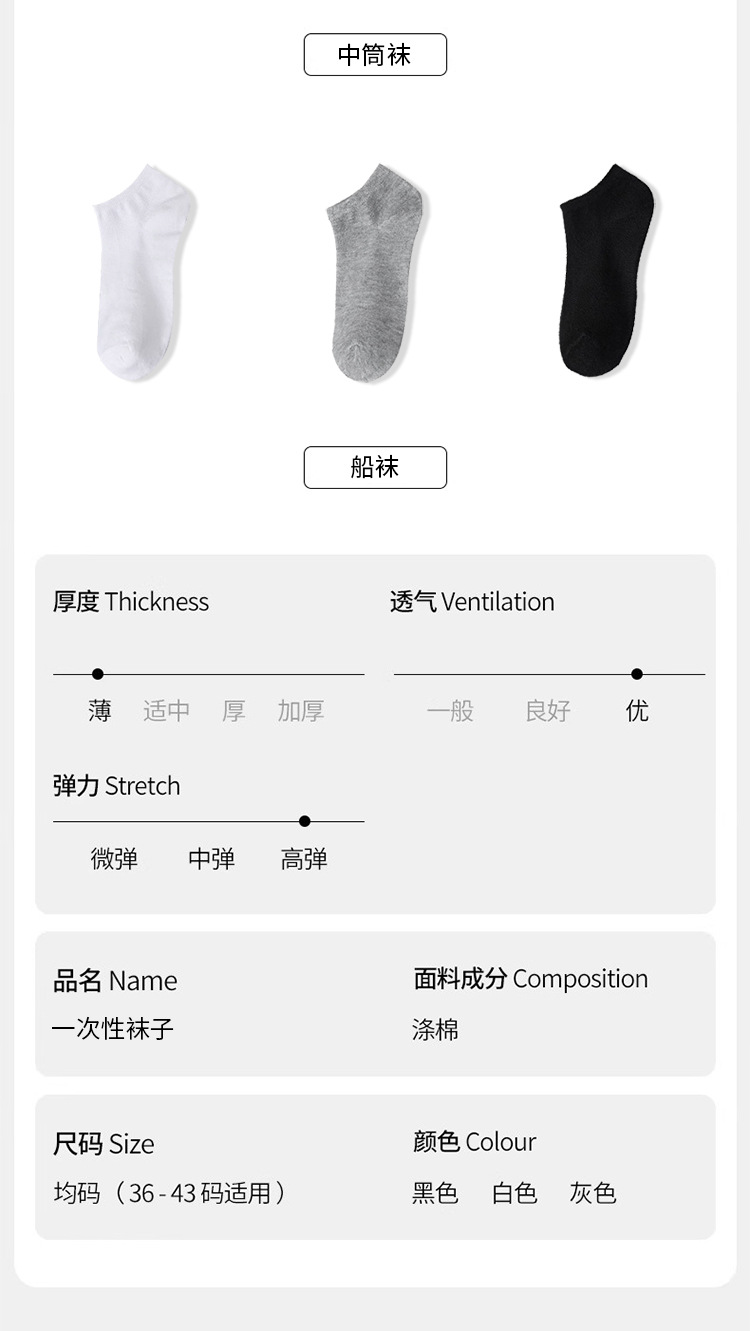 엄선된 탑윙 일회용 양말, 여행용, 레저용, 휴대용, 노워시 양말, 남녀공용 보트양말, 통기성 땀흡수 양말