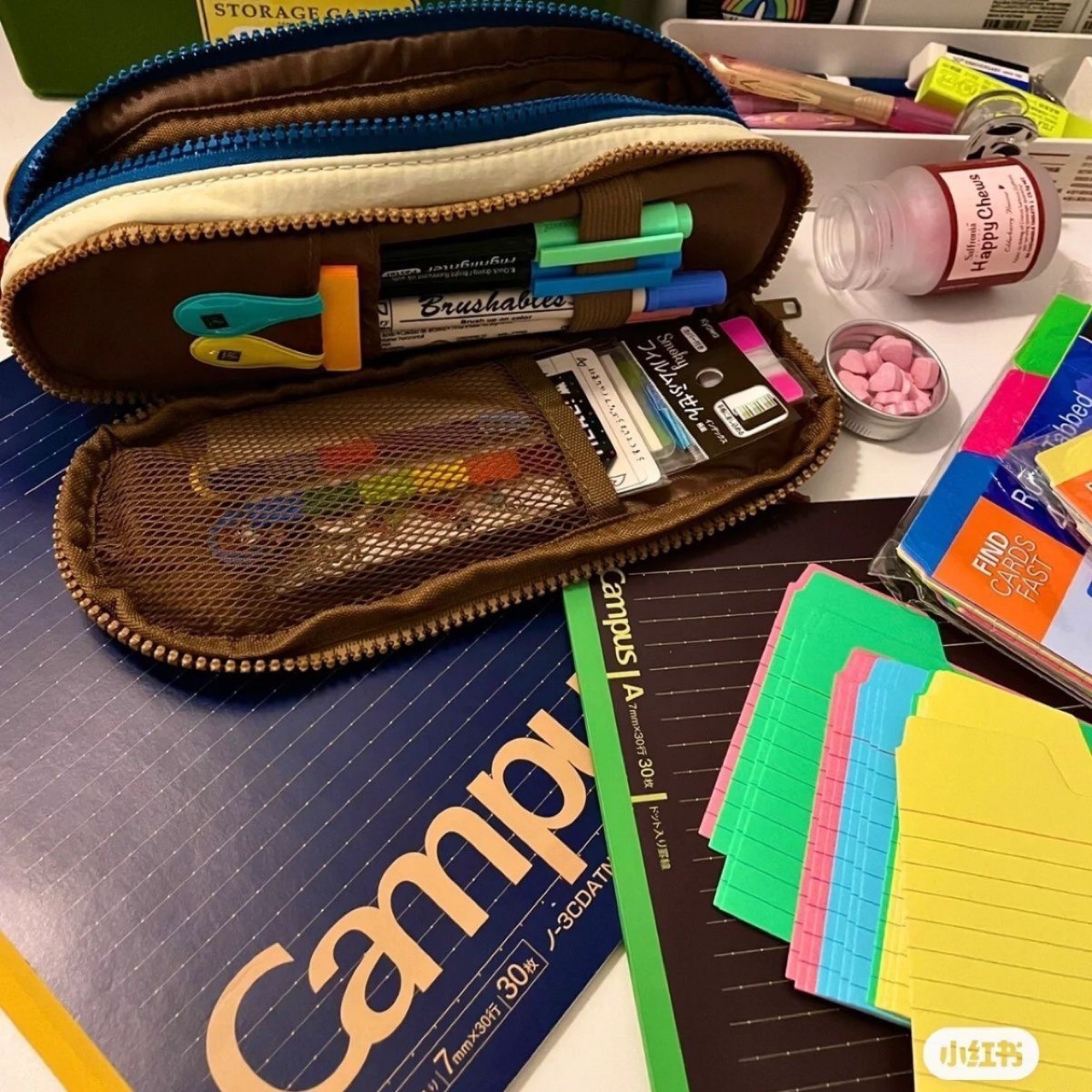 작은 빨간 승마 책 Ruosu 좋은 펜 가방 학생 일본 명암 컬러 연필 케이스 대용량 더블 레이어 문구 보관 가방스토어 가기