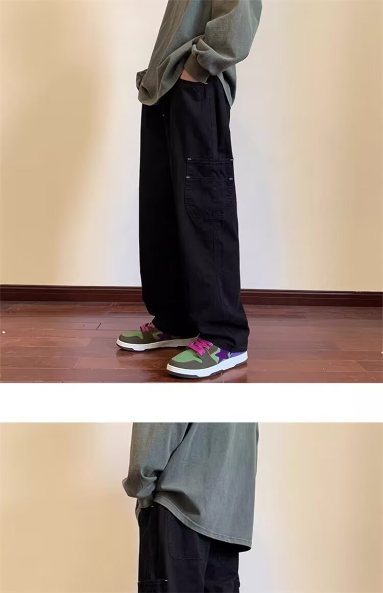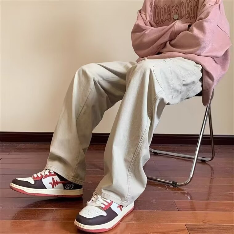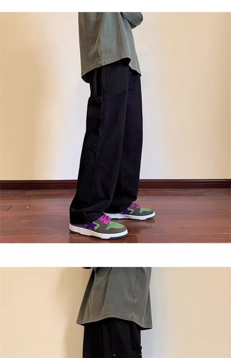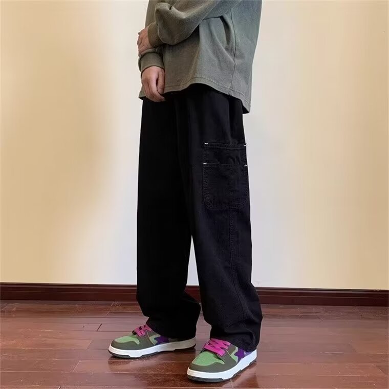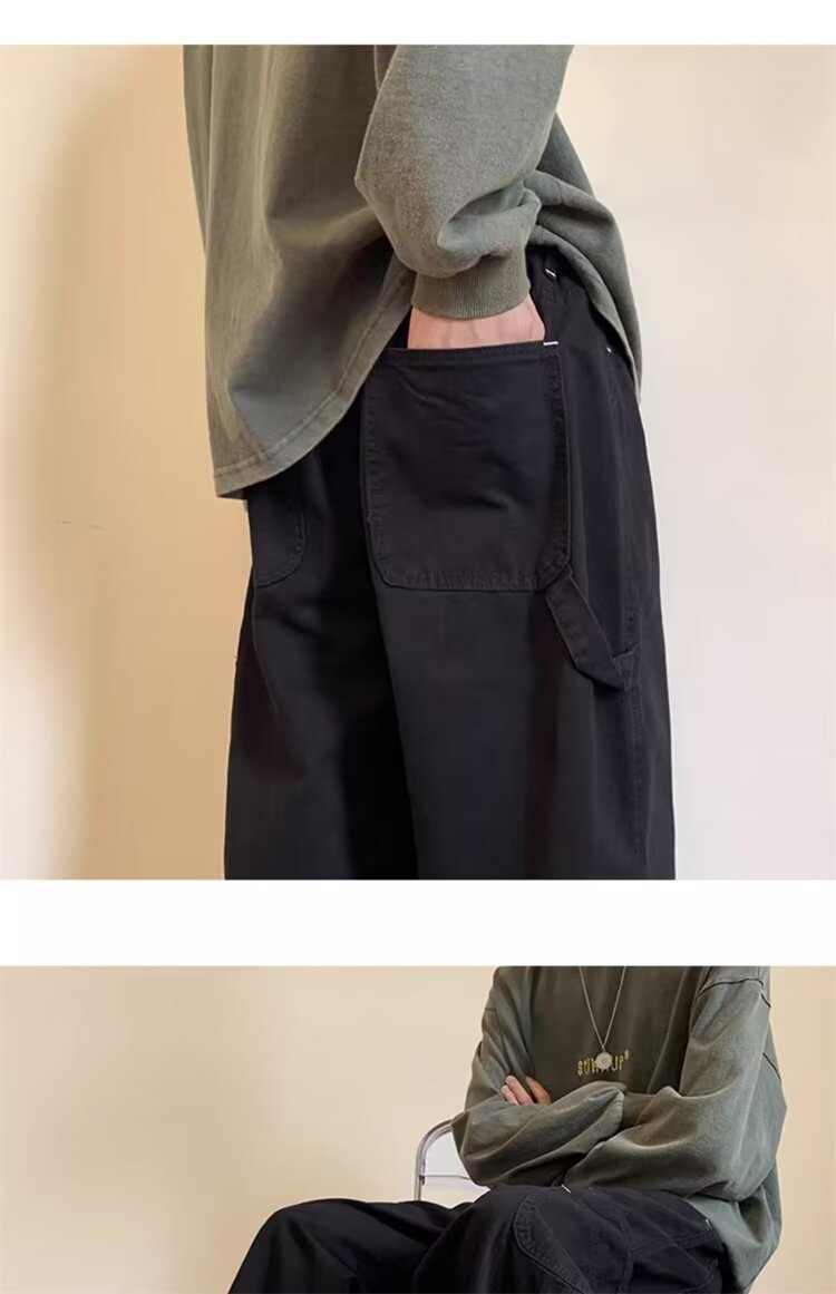일본 작업복 남성 여름 트렌디 스트리트 캐주얼 바지 한국 스타일 루즈 와이드 레그 스트레이트 롱 팬츠