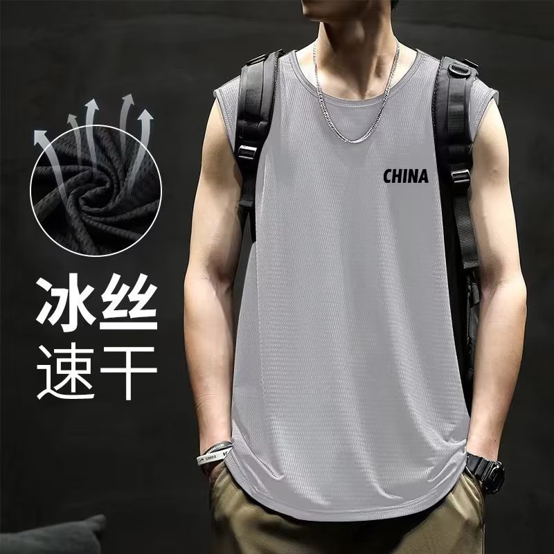 피트니스 스포츠 조끼 남자 여름 얇은 느슨한 메쉬 빠른 건조 민소매 탑 Ins 홍콩 스타일 웨이스트 밴드 티셔츠스토어 가기
