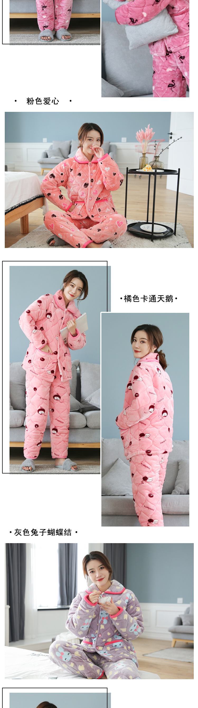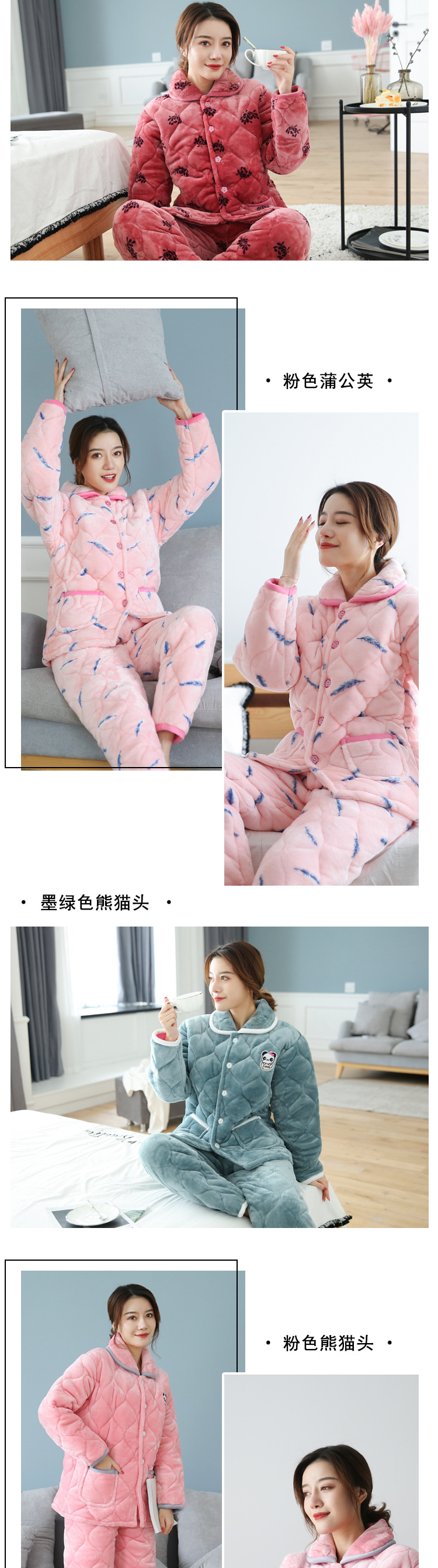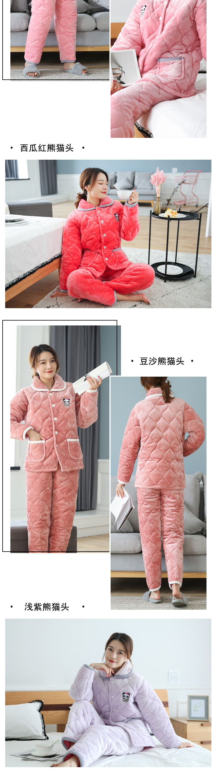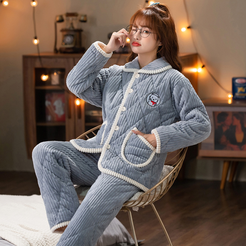 파자마 여성의 겨울 두꺼운 3 층 퀼트 플란넬 기모 따뜻한 플러스 사이즈 외부 귀여운 산호 양털 홈 옷을 입고