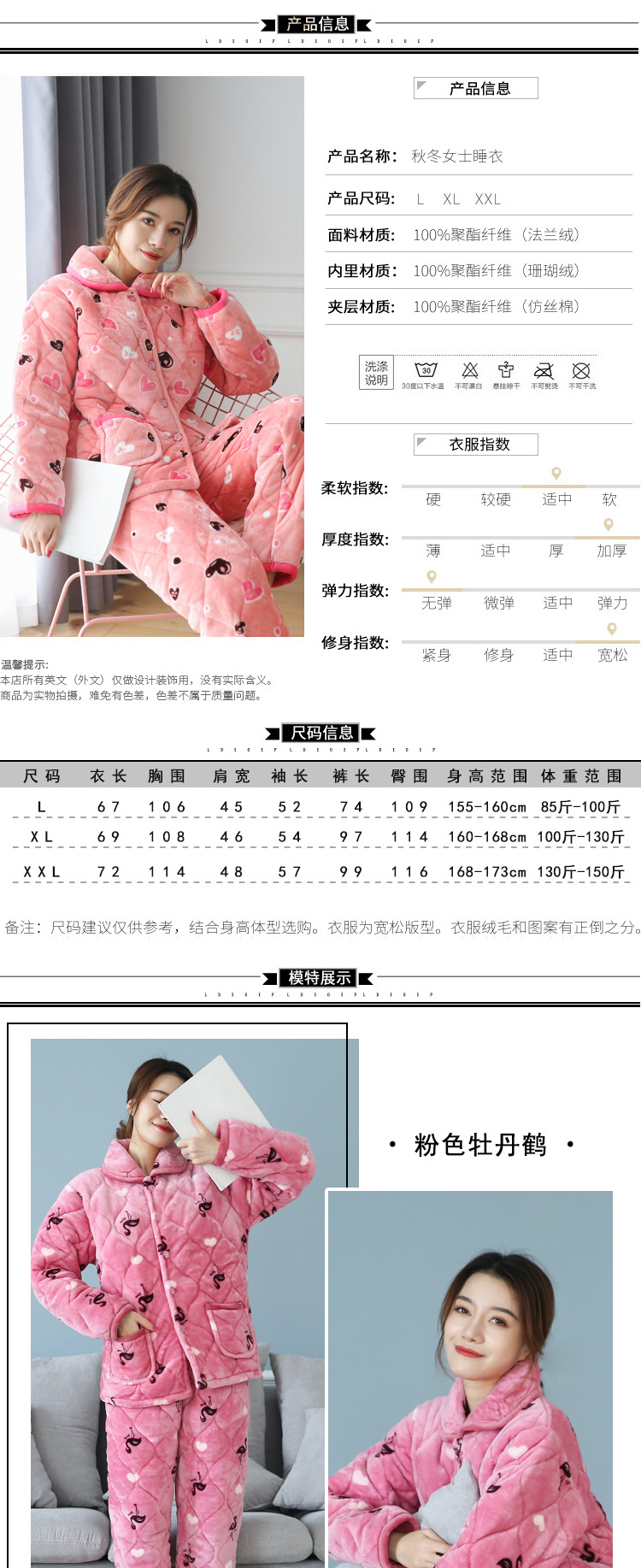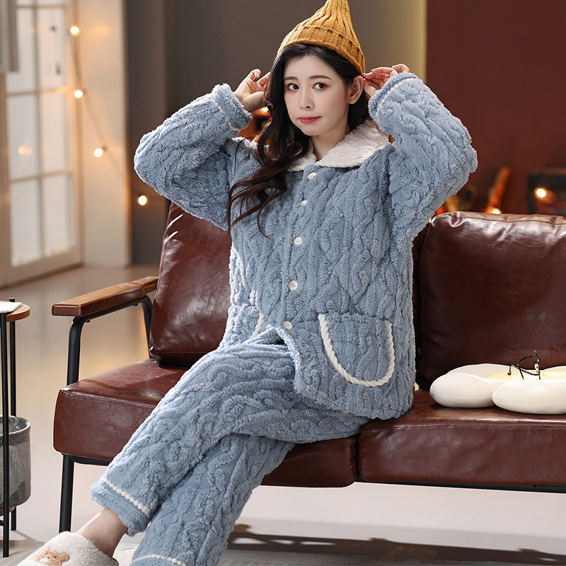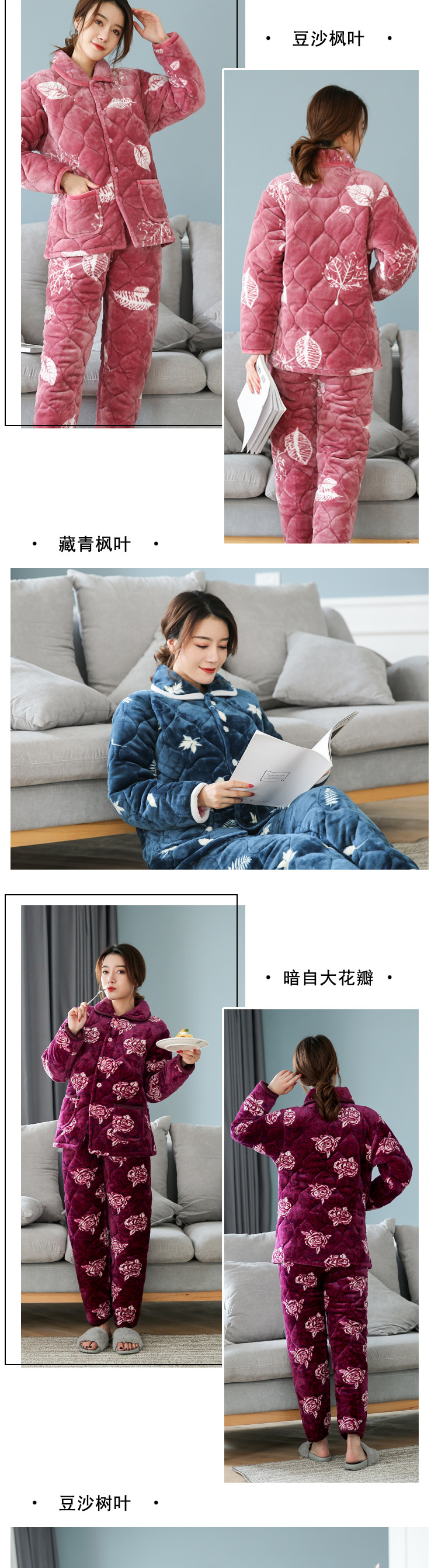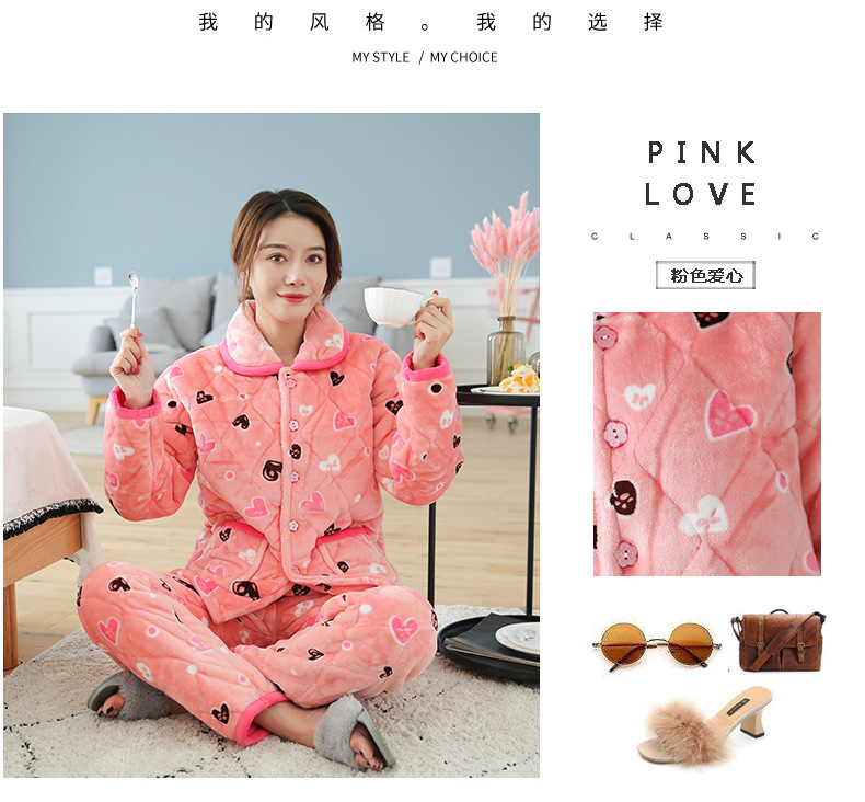 파자마 여성의 겨울 두꺼운 3 층 퀼트 플란넬 기모 따뜻한 플러스 사이즈 외부 귀여운 산호 양털 홈 옷을 입고
