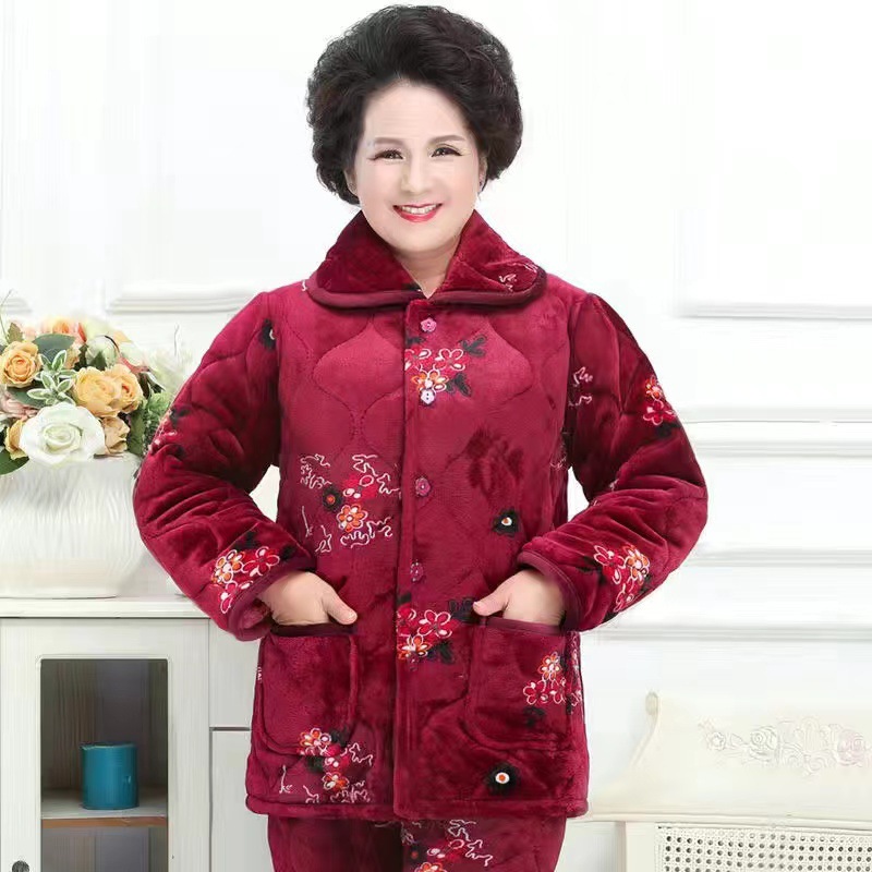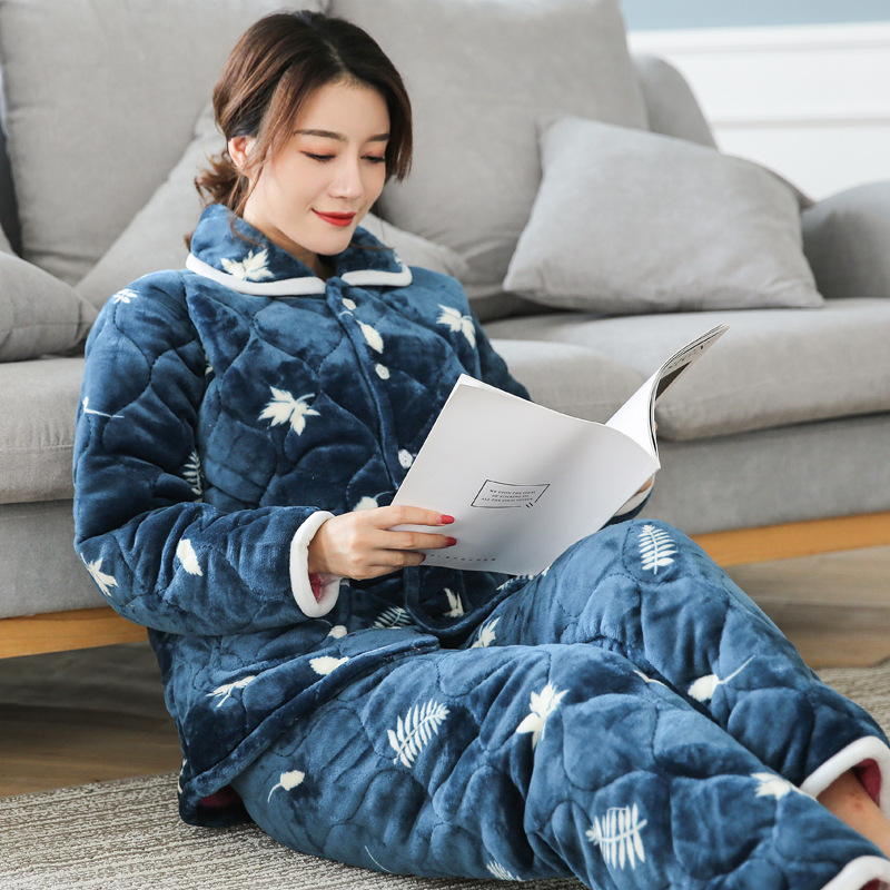 파자마 여성의 겨울 두꺼운 3 층 퀼트 플란넬 기모 따뜻한 플러스 사이즈 외부 귀여운 산호 양털 홈 옷을 입고스토어 가기