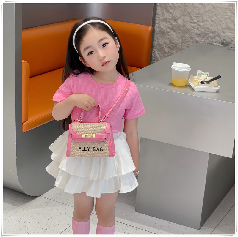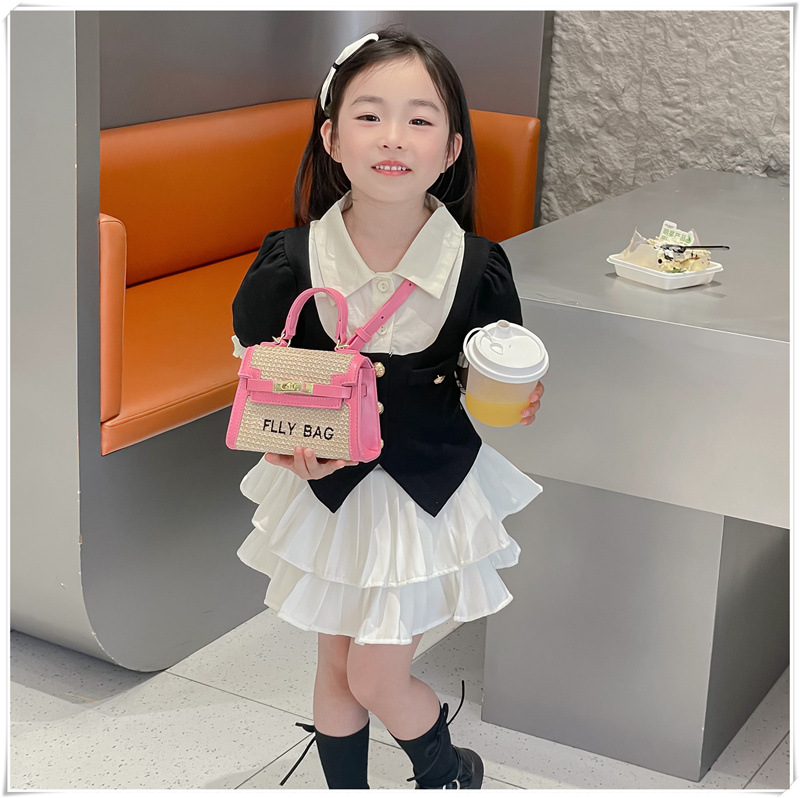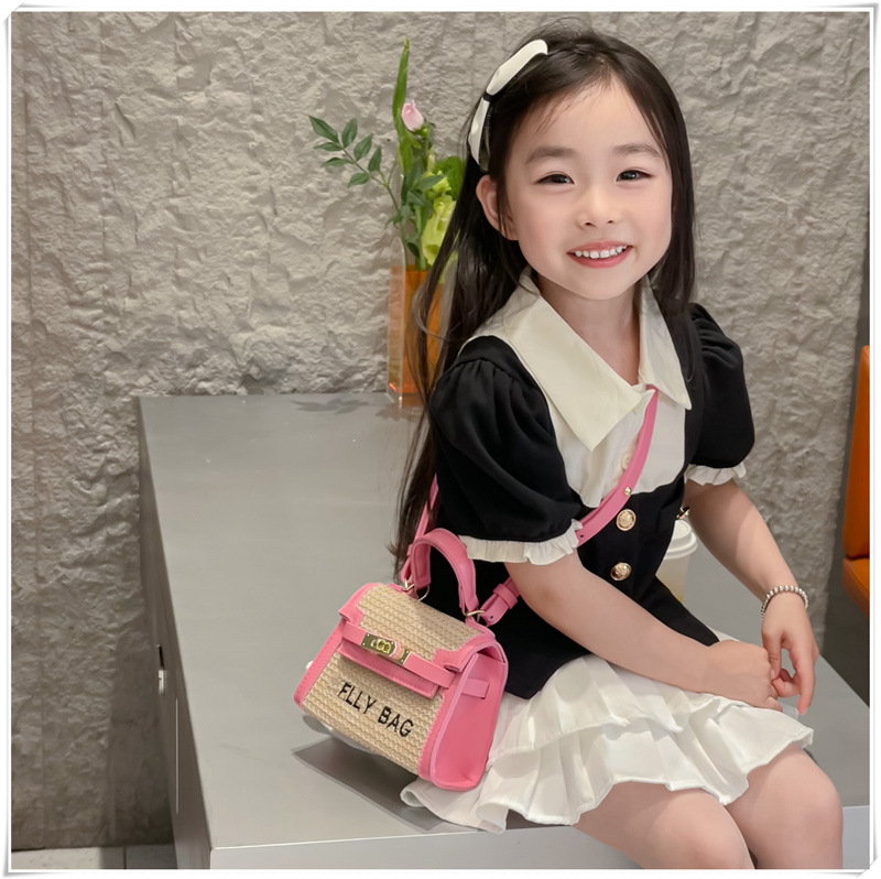 인터넷 연예인 미니 켈리 가방 여성 2024 외국인 스타일 공주 여름 짠 소녀 손 가방 어린이 크로스 바디 가방 도매