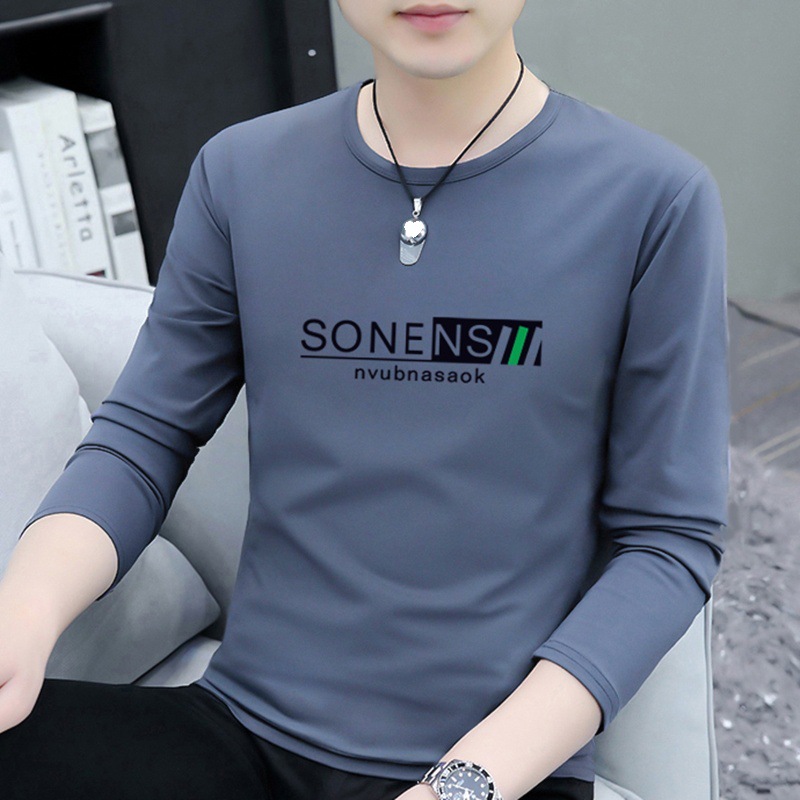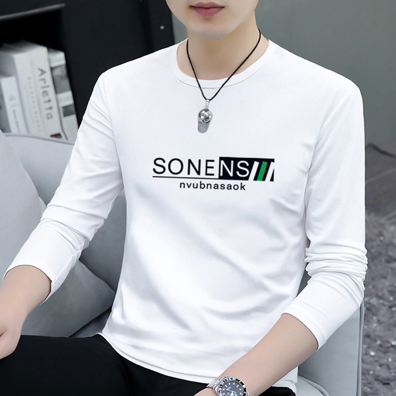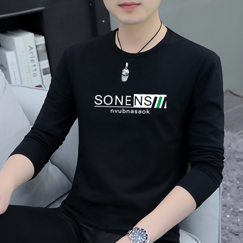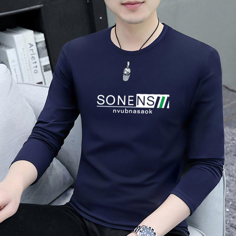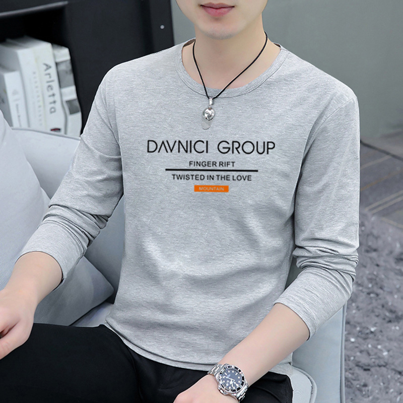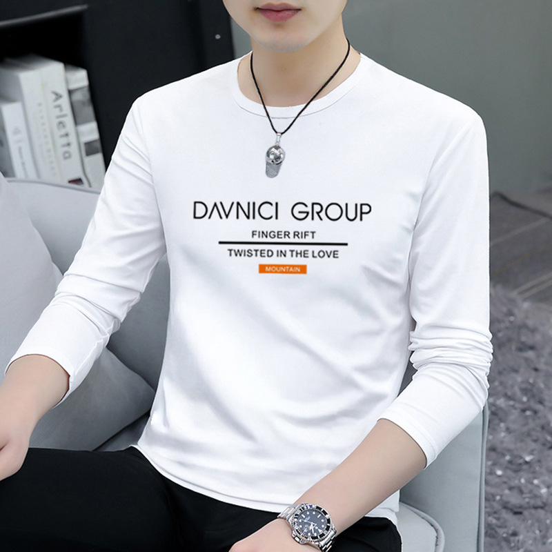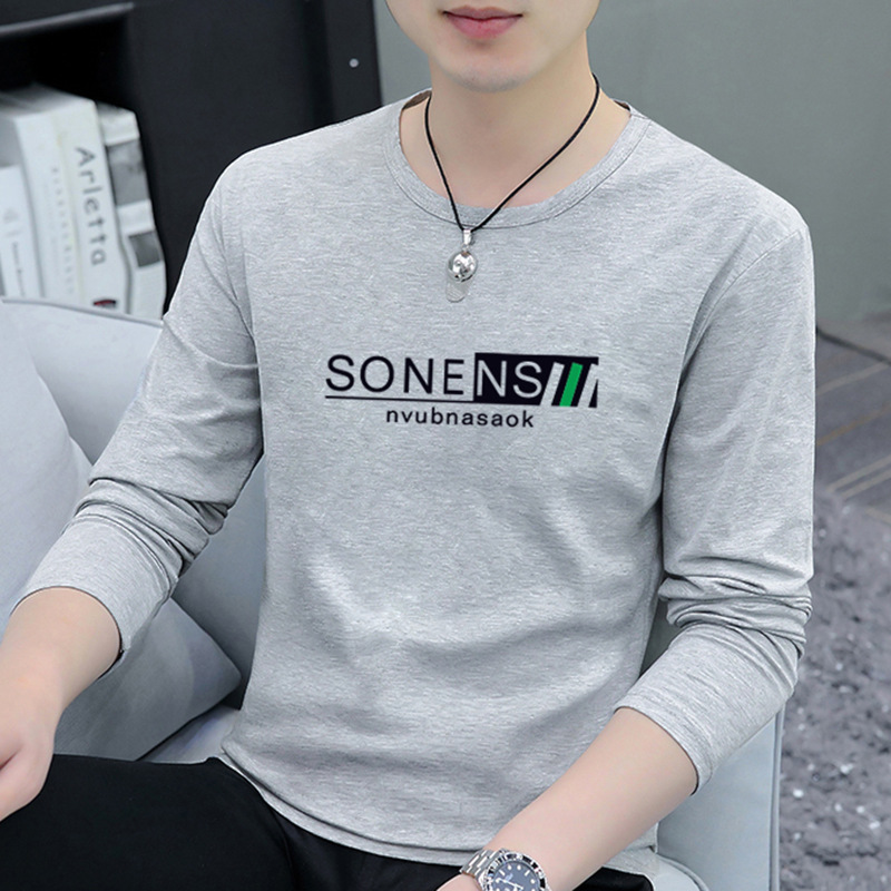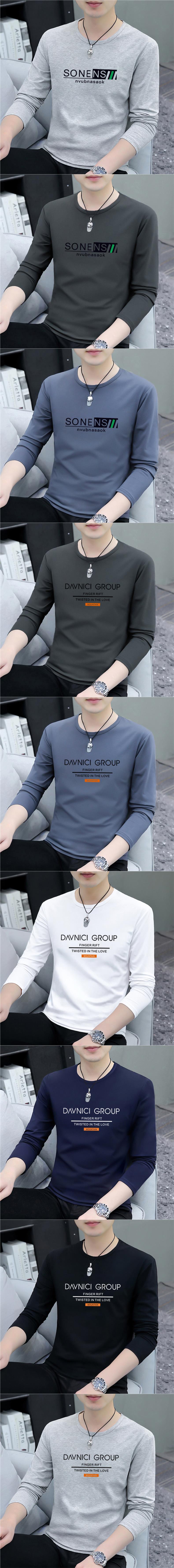 봄과 가을 얇은 Ins 남성용 티셔츠 새로운 긴 소매 가을 옷 내베이스 셔츠 탑 옷 라운드 넥 T 블러드 커프스토어 가기