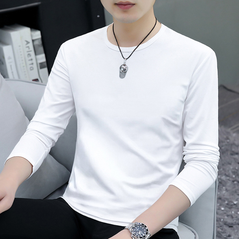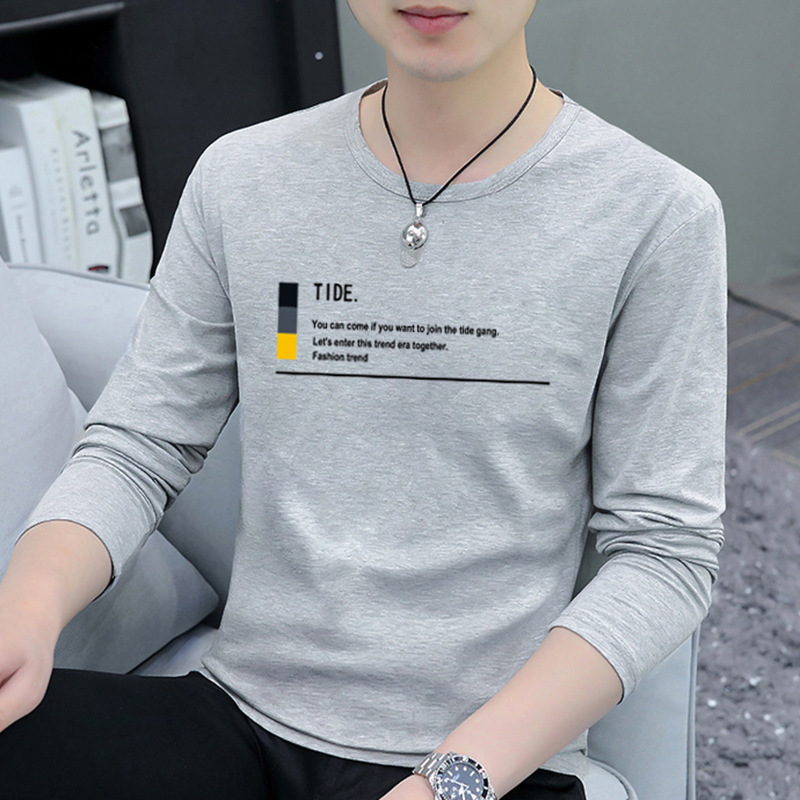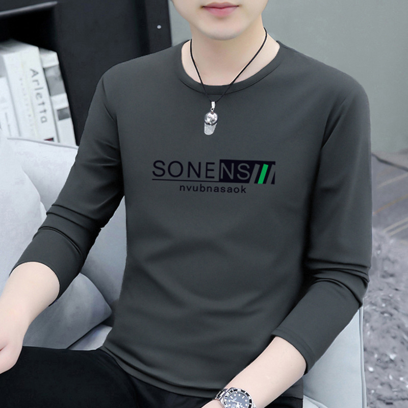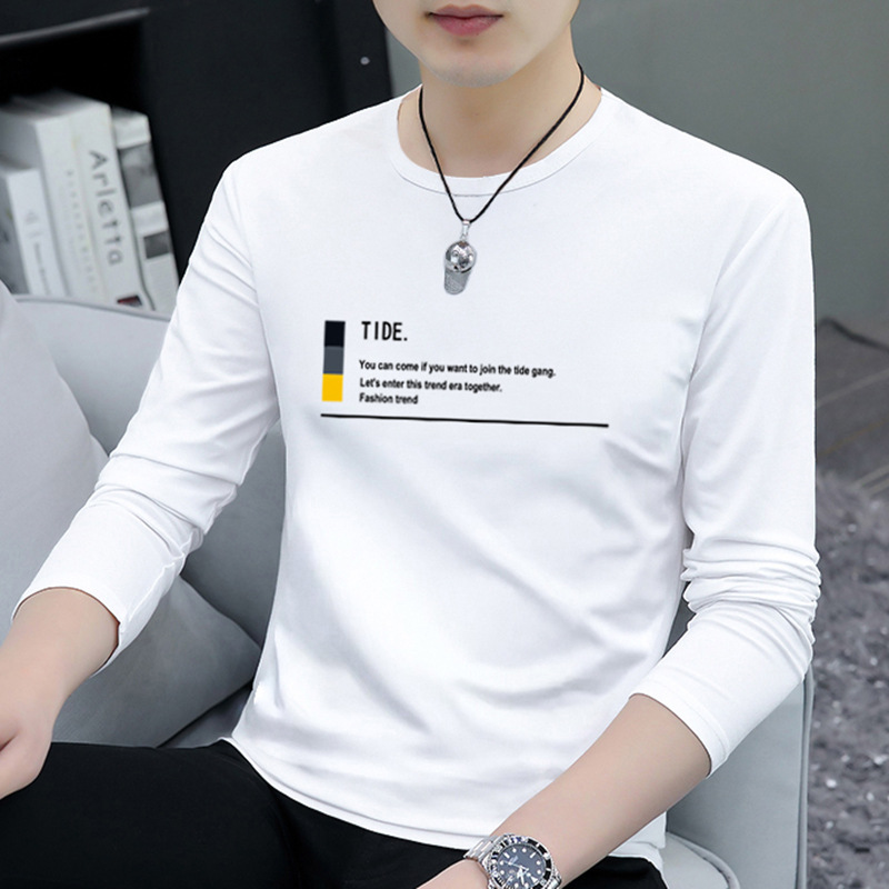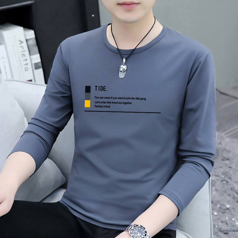 봄과 가을 얇은 Ins 남성용 티셔츠 새로운 긴 소매 가을 옷 내베이스 셔츠 탑 옷 라운드 넥 T 블러드 커프