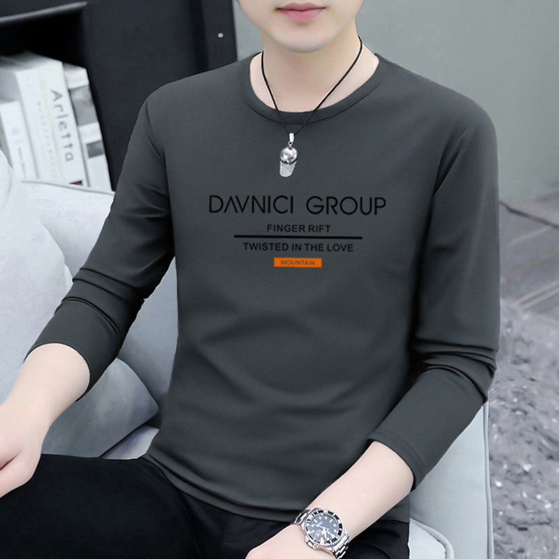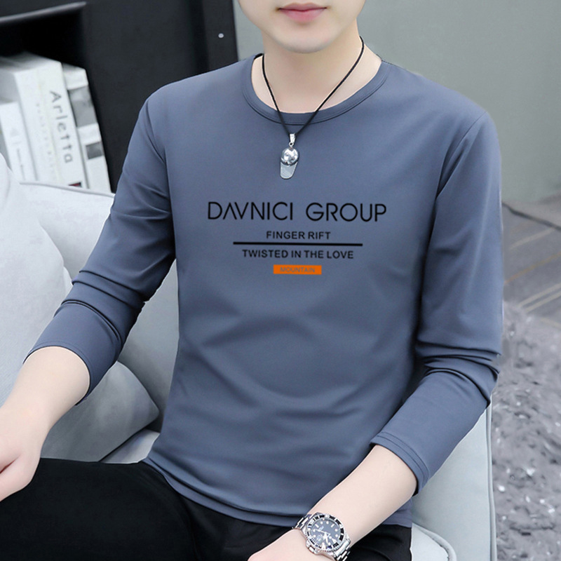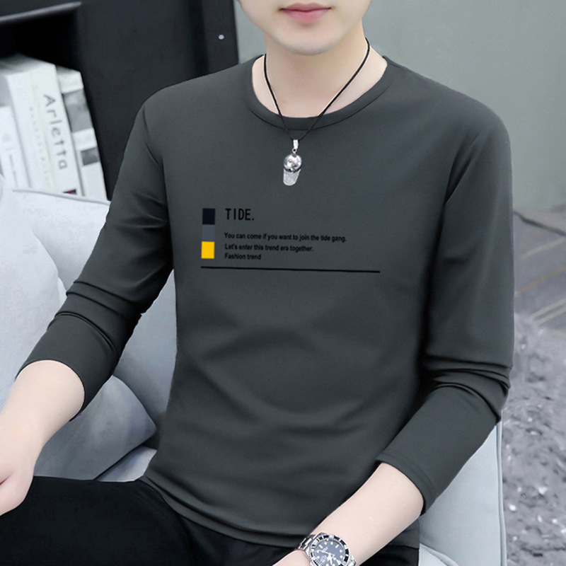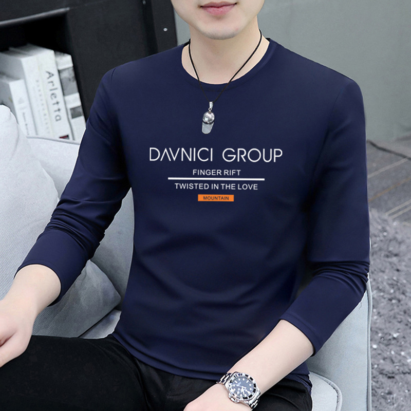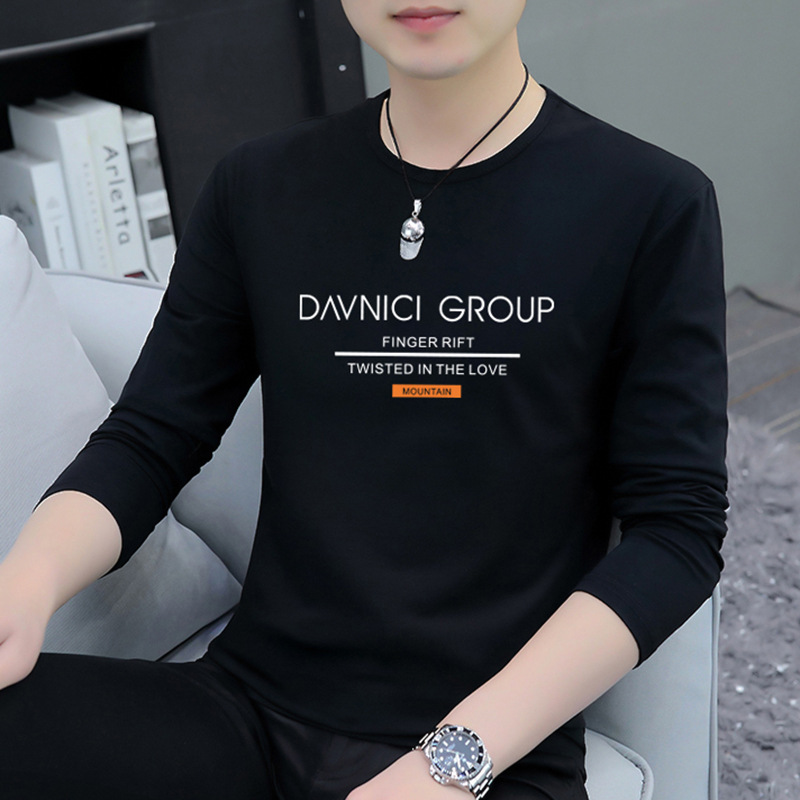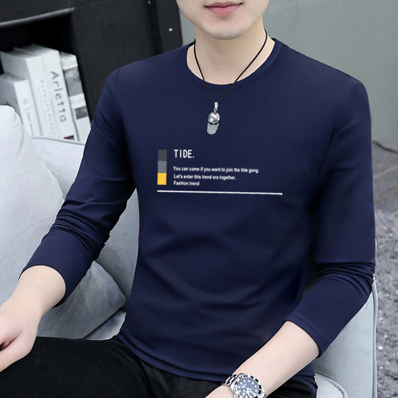 봄과 가을 얇은 Ins 남성용 티셔츠 새로운 긴 소매 가을 옷 내베이스 셔츠 탑 옷 라운드 넥 T 블러드 커프