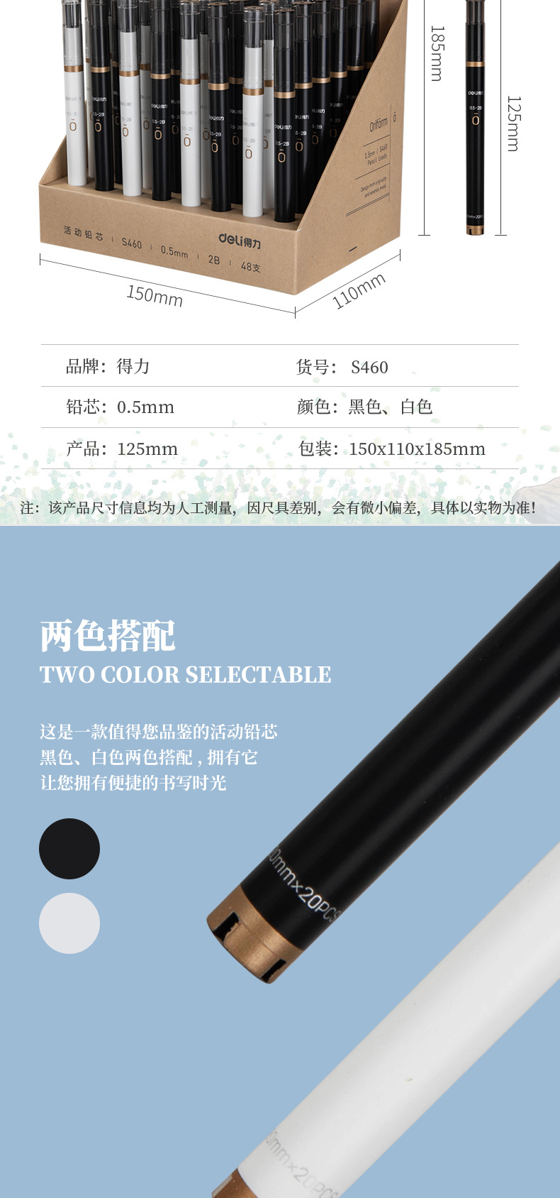 델리 자동 연필 리드 0.5mm 자동 연필 교체 0.7 학생 문구 S460 활성 연필