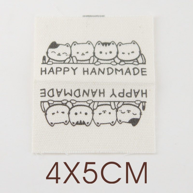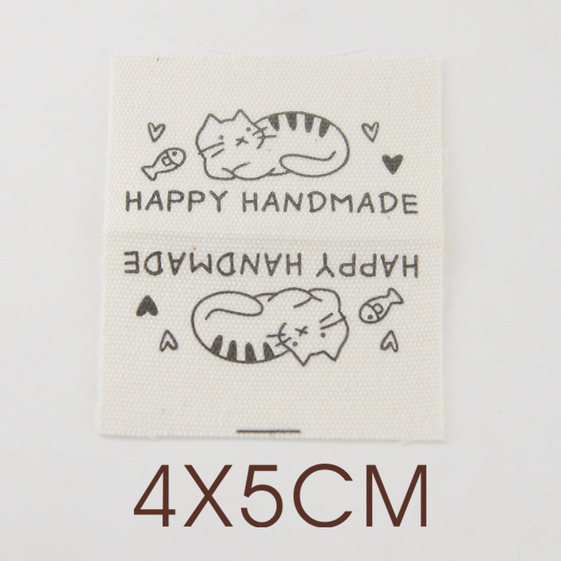 재고 손으로 접은 검은 천 라벨 액세서리 바느질 DIY 액세서리 사이드 라벨 새끼 고양이 영어 만화 하우스스토어 가기