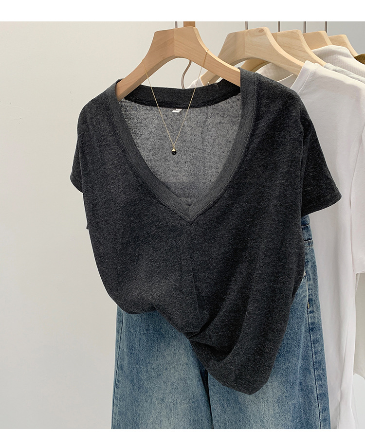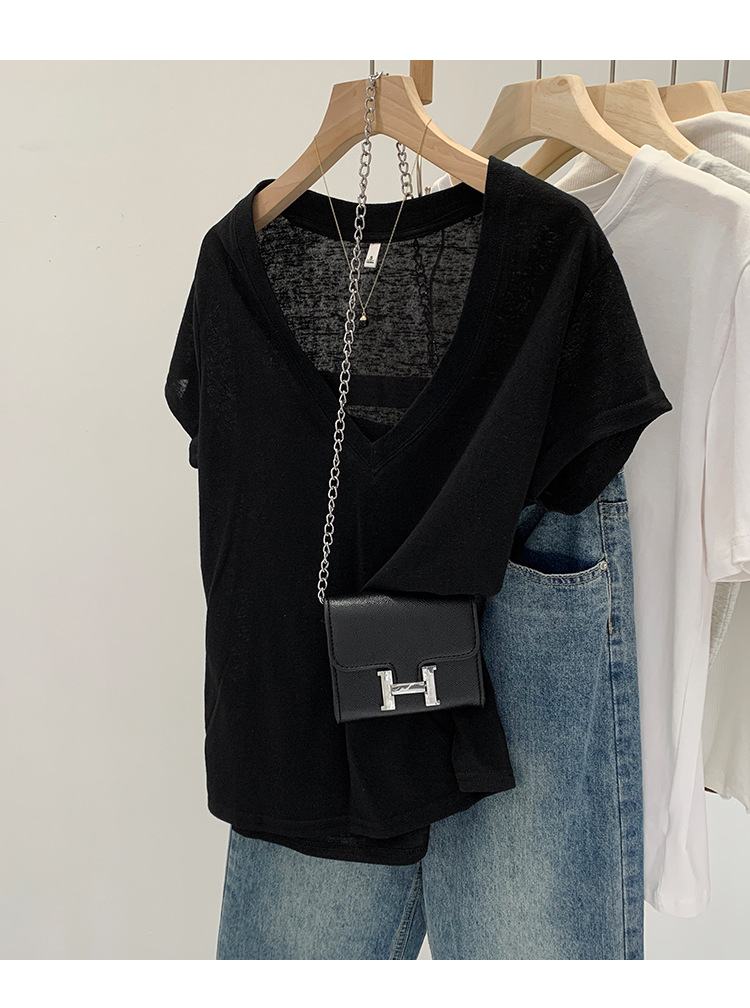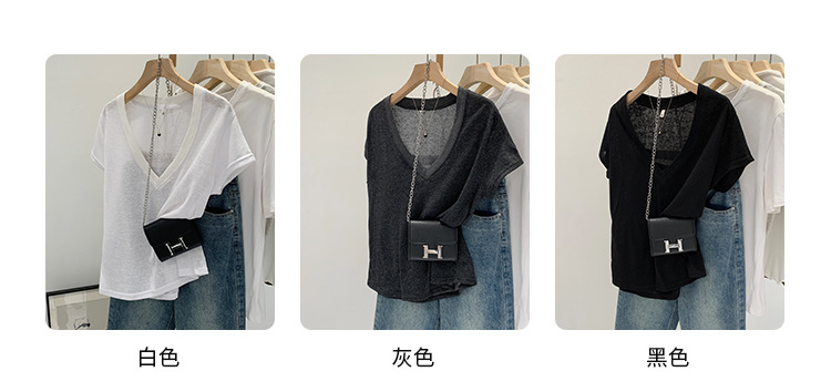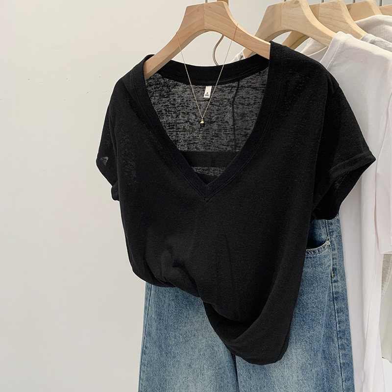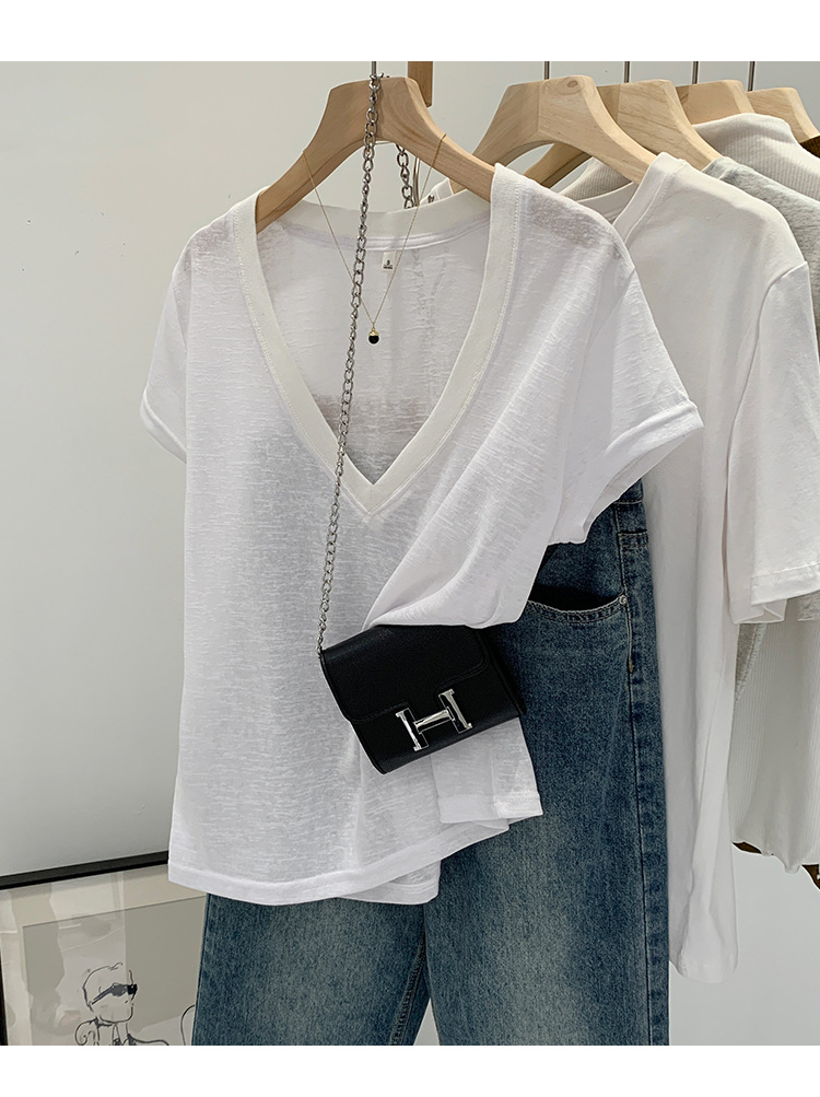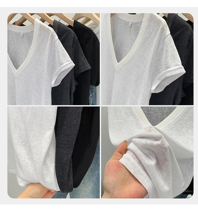 유럽 인기 흰색 V 넥 눈송이면과 린넨 반팔 티셔츠 여성용 여름 2025 새로운 약간 시스루 순수한 정욕 핫 소녀 탑스토어 가기