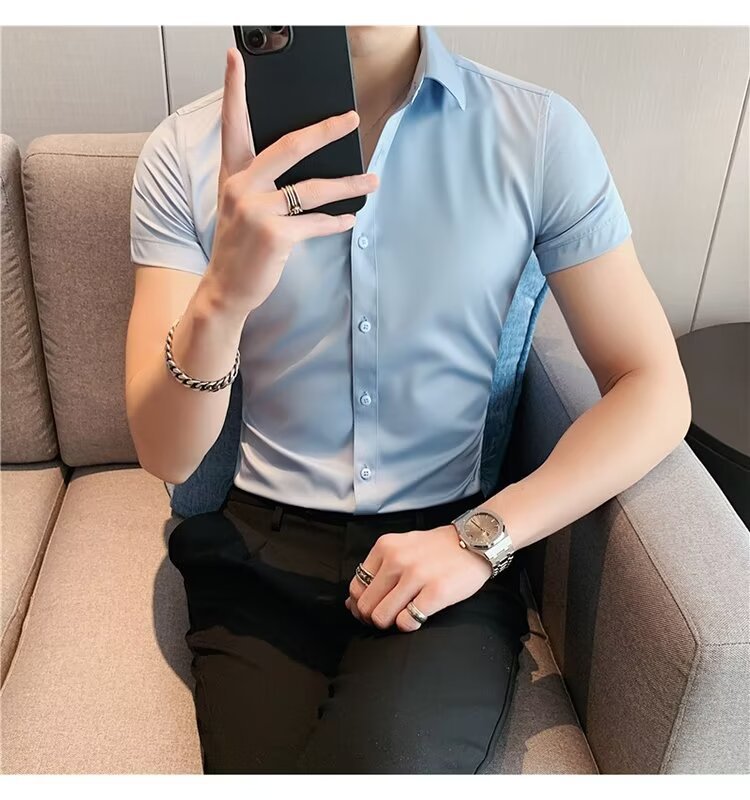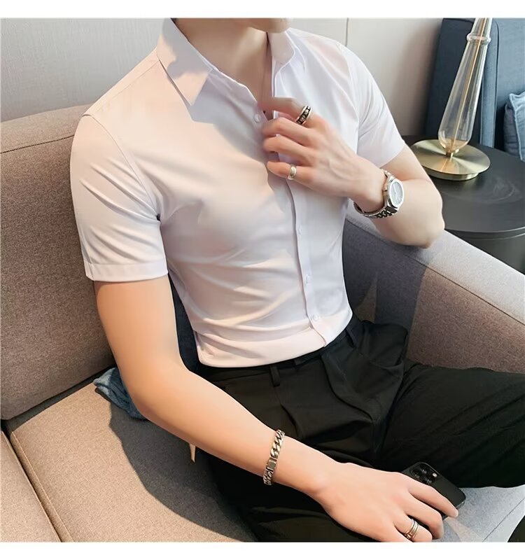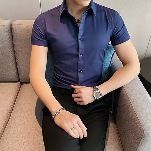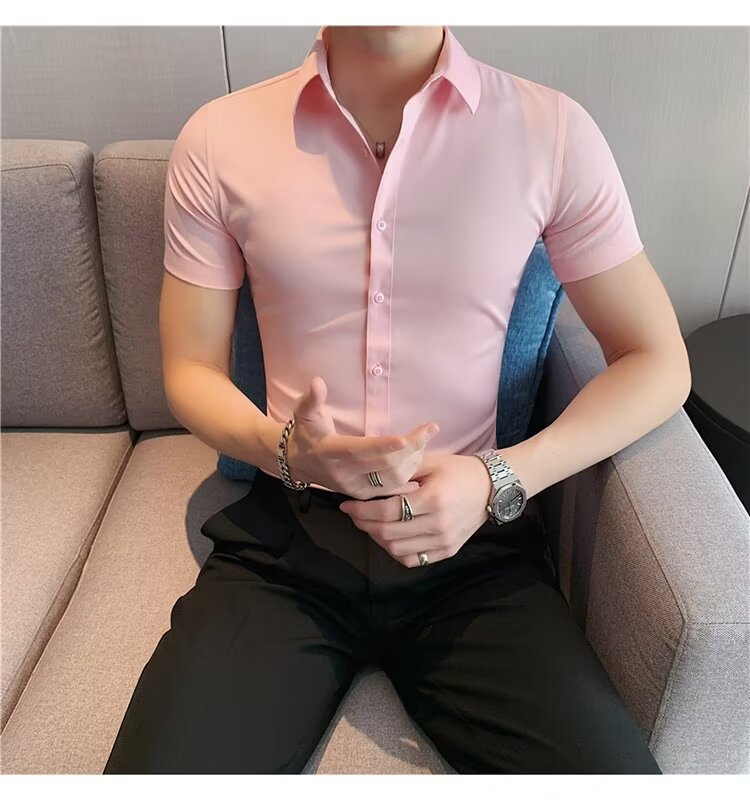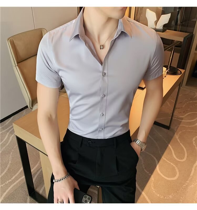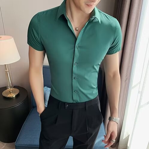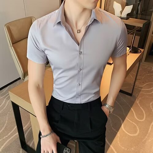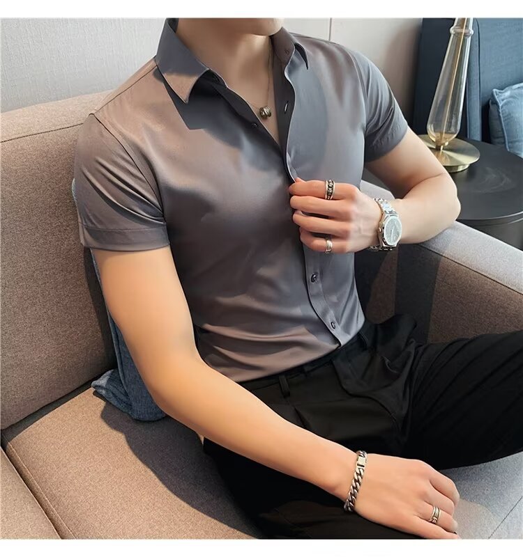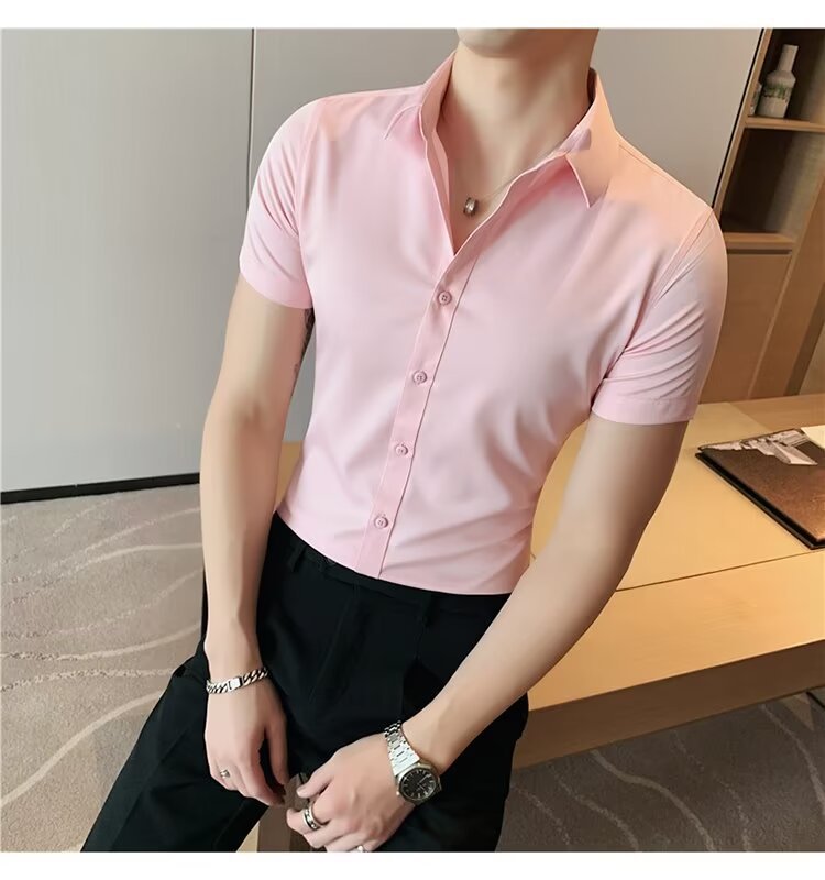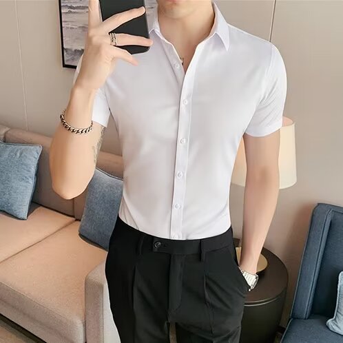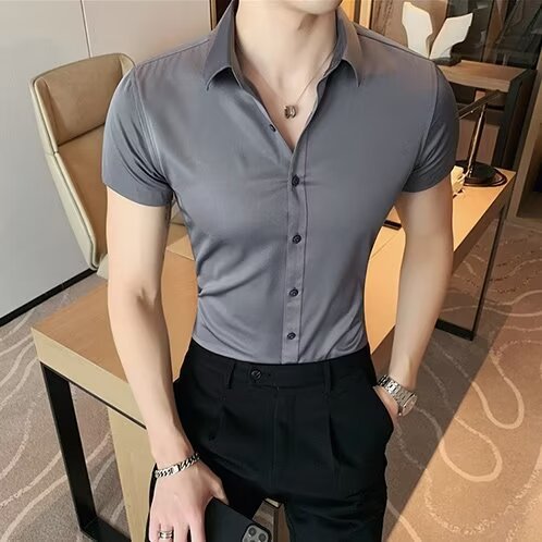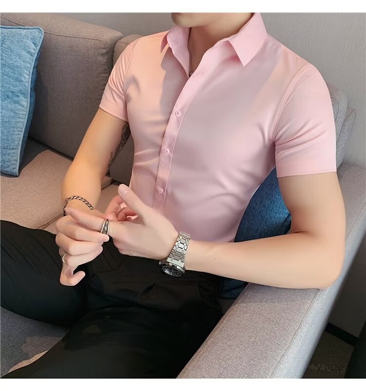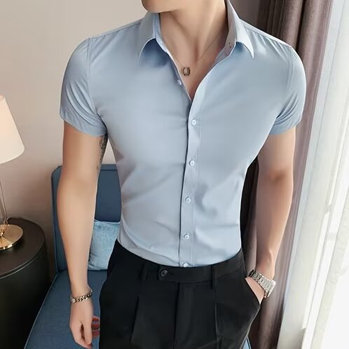 2024 솔리드 컬러 셔츠 남자 여름 홍콩 스타일 학생 느슨한 틈새 디자인 감각 재미있는 새로운 남성 탑스토어 가기