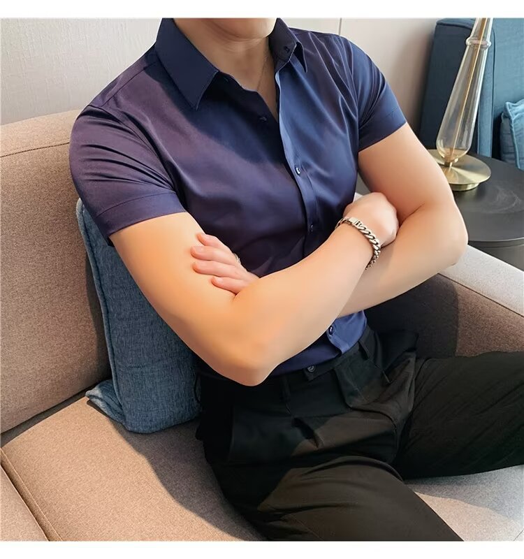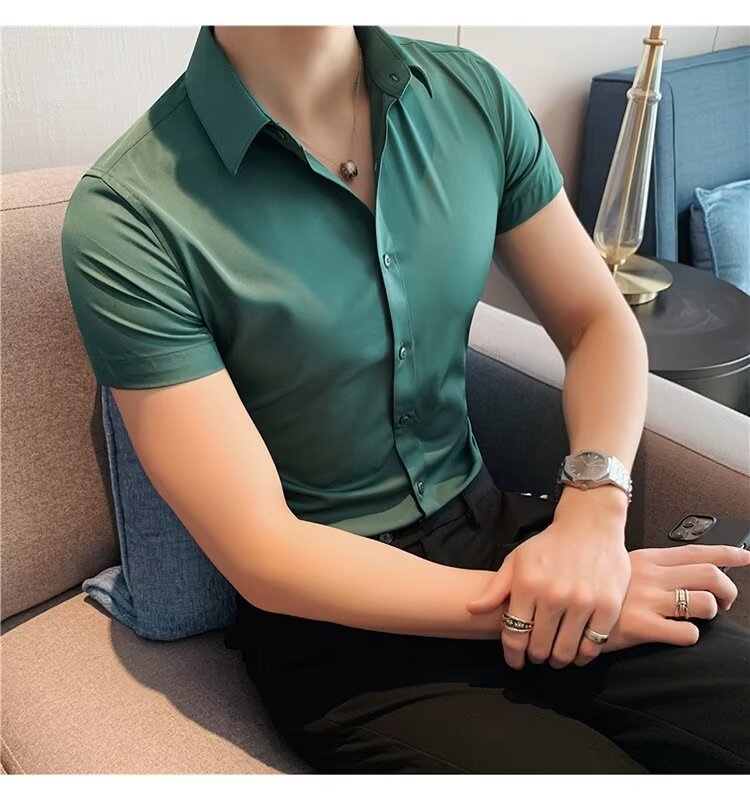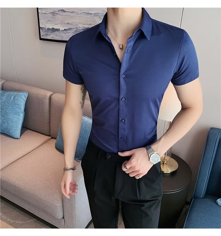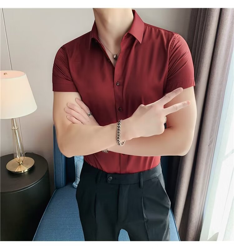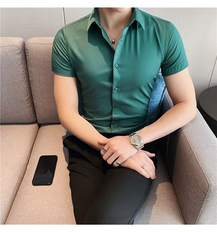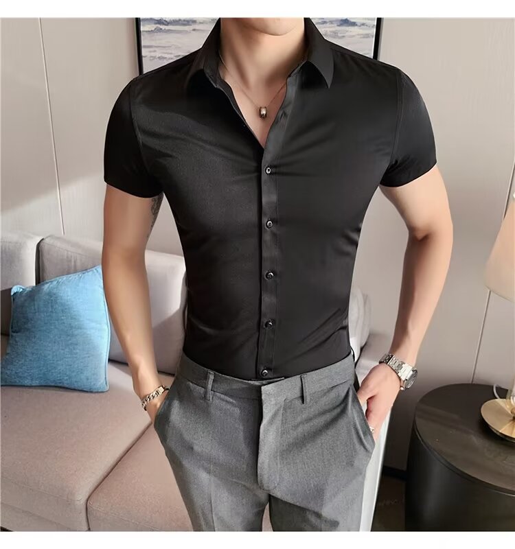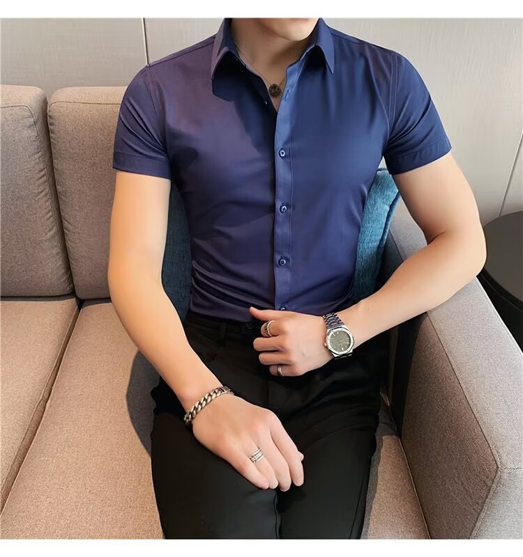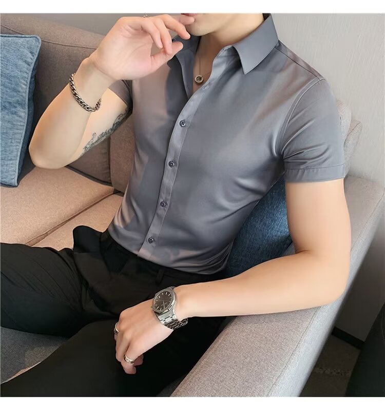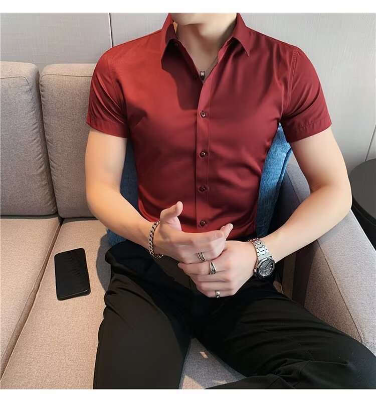 2024 솔리드 컬러 셔츠 남자 여름 홍콩 스타일 학생 느슨한 틈새 디자인 감각 재미있는 새로운 남성 탑스토어 가기