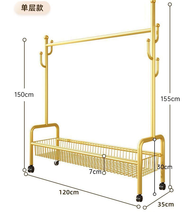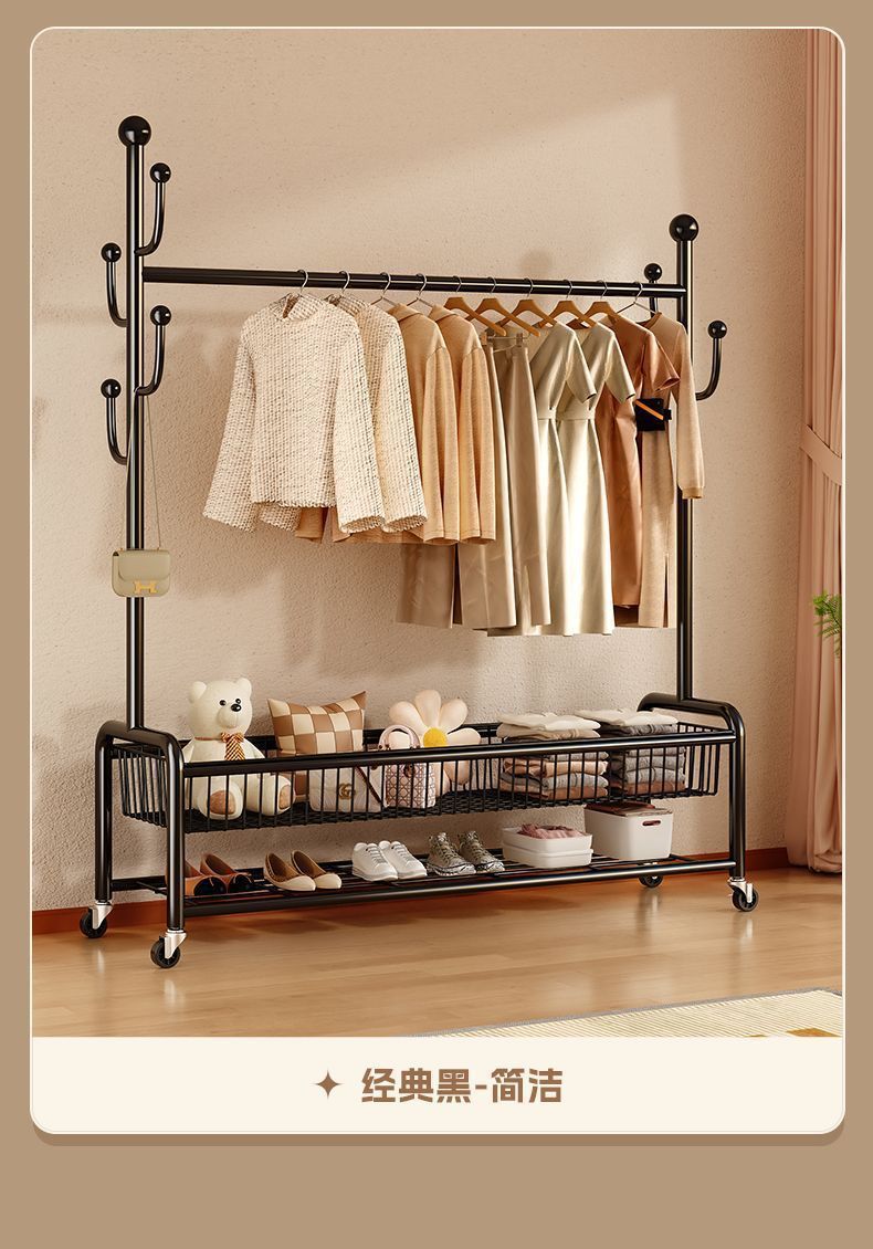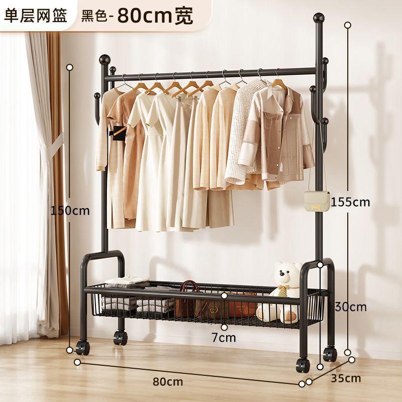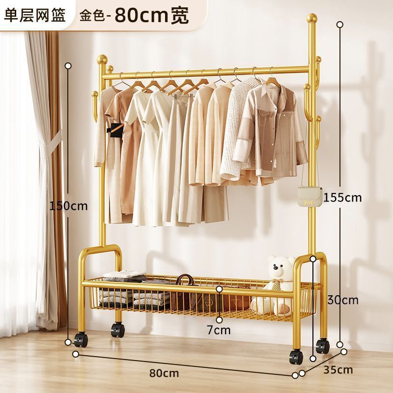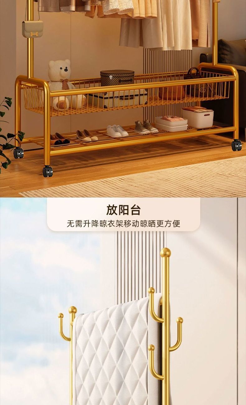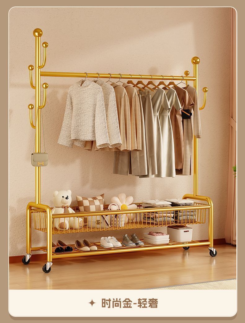 간단한 옷걸이 바닥 ~ 바닥 건조 행거 침실 이동식 코트 랙 발코니 건조 행거 작은 아파트 옷 랙스토어 가기
