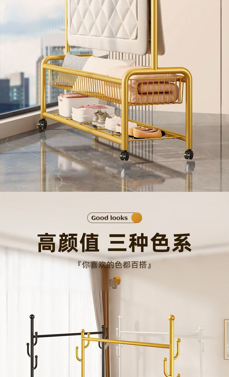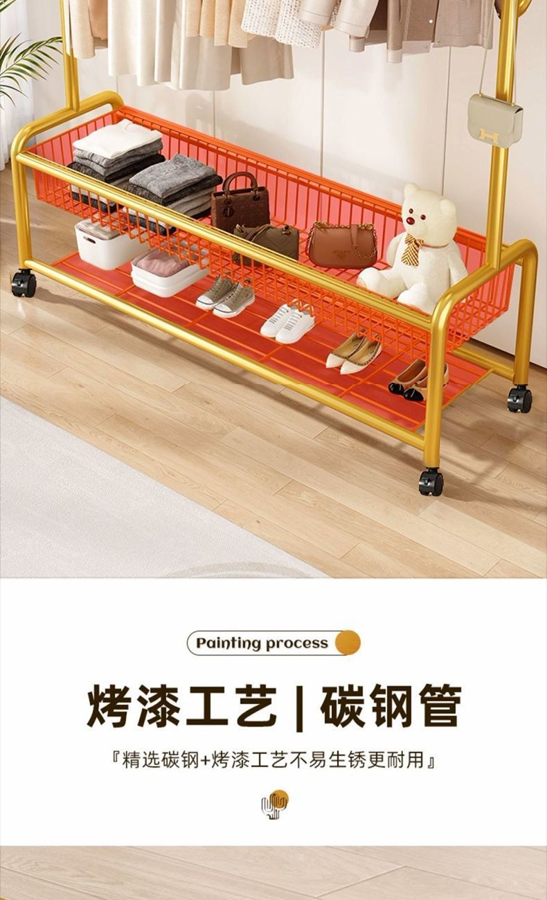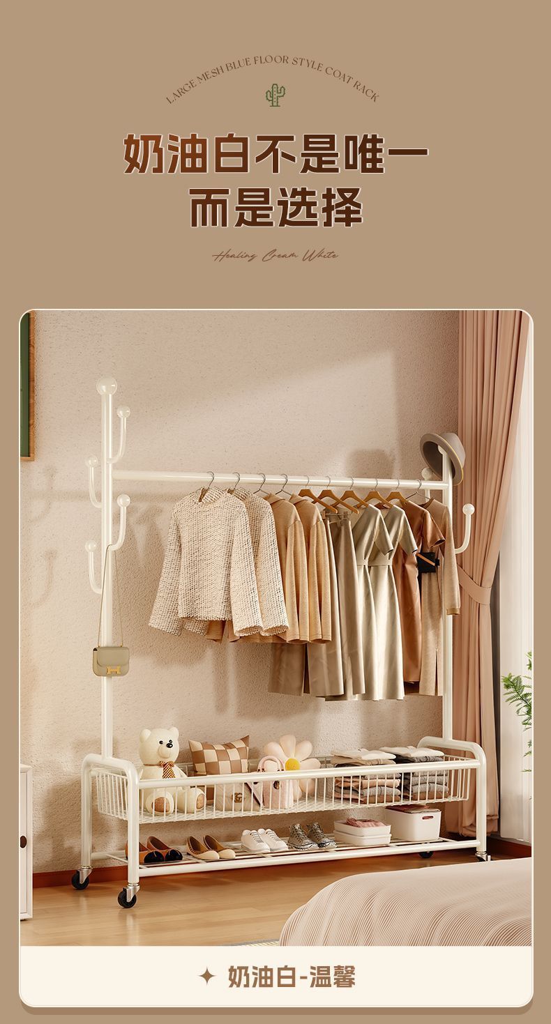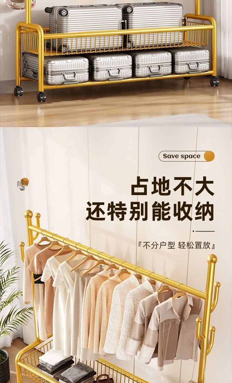 간단한 옷걸이 바닥 ~ 바닥 건조 행거 침실 이동식 코트 랙 발코니 건조 행거 작은 아파트 옷 랙스토어 가기