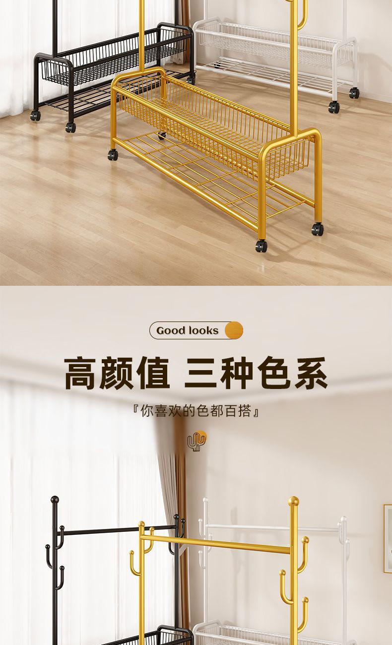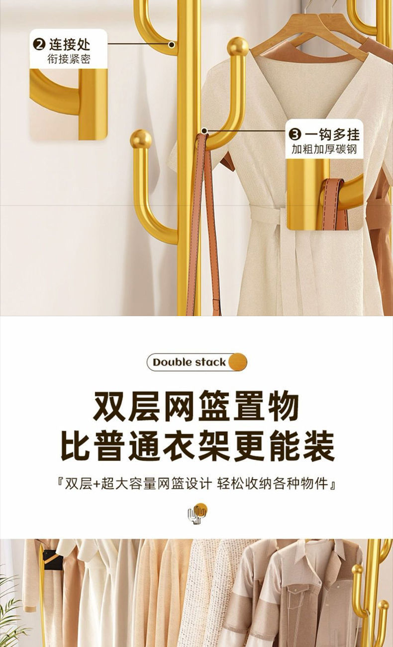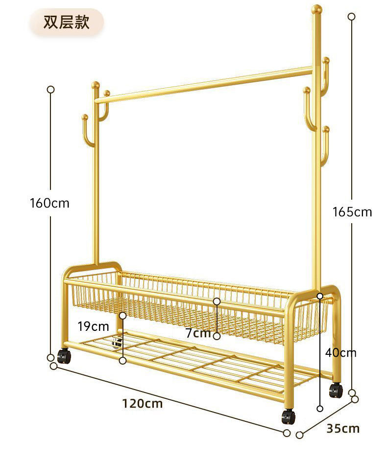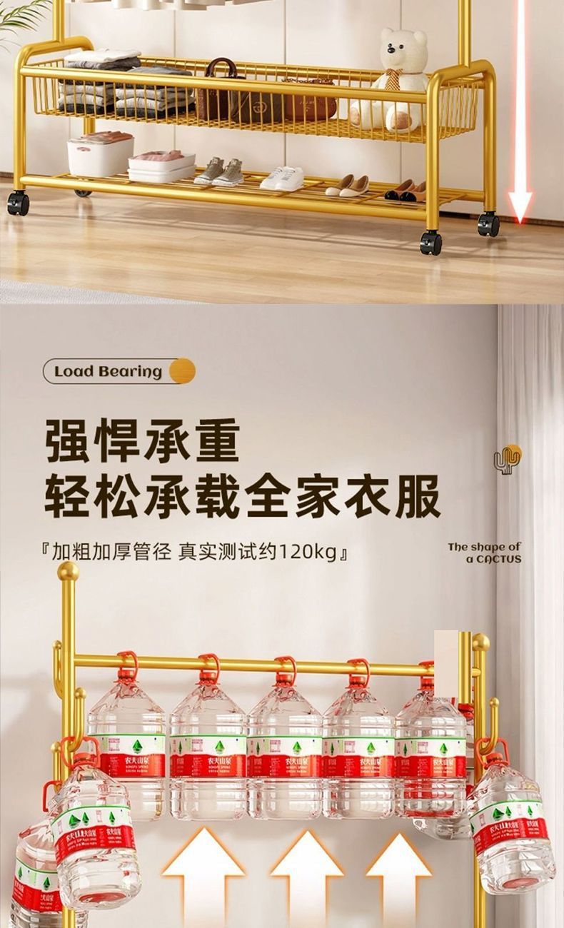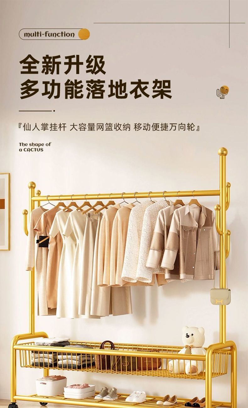 간단한 옷걸이 바닥 ~ 바닥 건조 행거 침실 이동식 코트 랙 발코니 건조 행거 작은 아파트 옷 랙스토어 가기