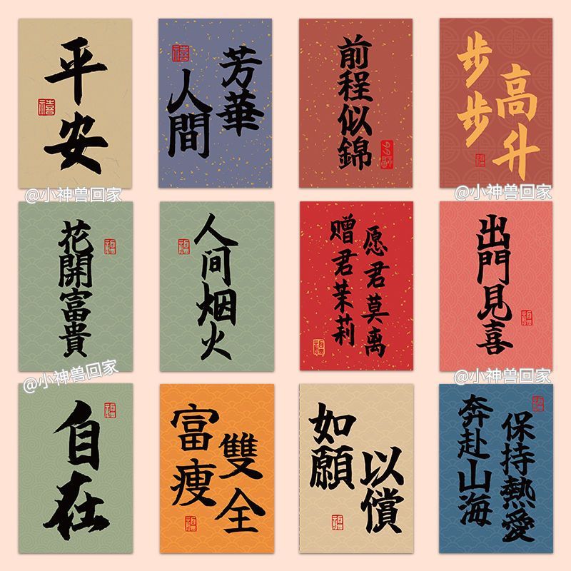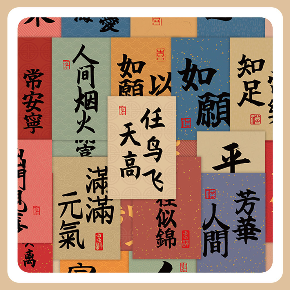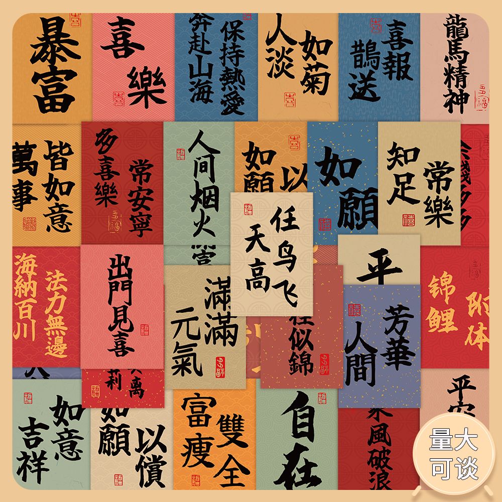 국가 패션 텍스트 스티커 복고풍 중국 스타일 축복 스티커 골동품 서예 창조적 인 장식 저장 상자 휴대 전화스토어 가기