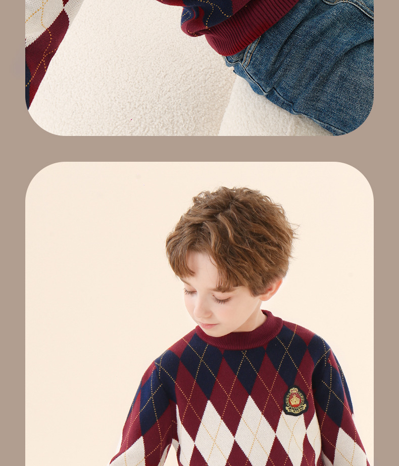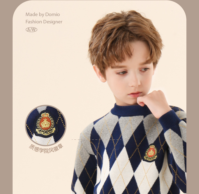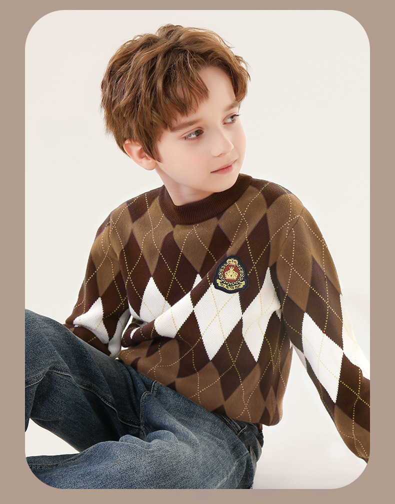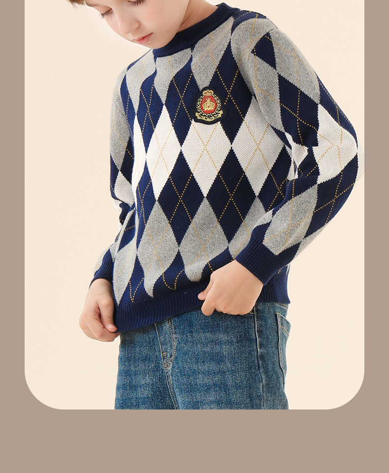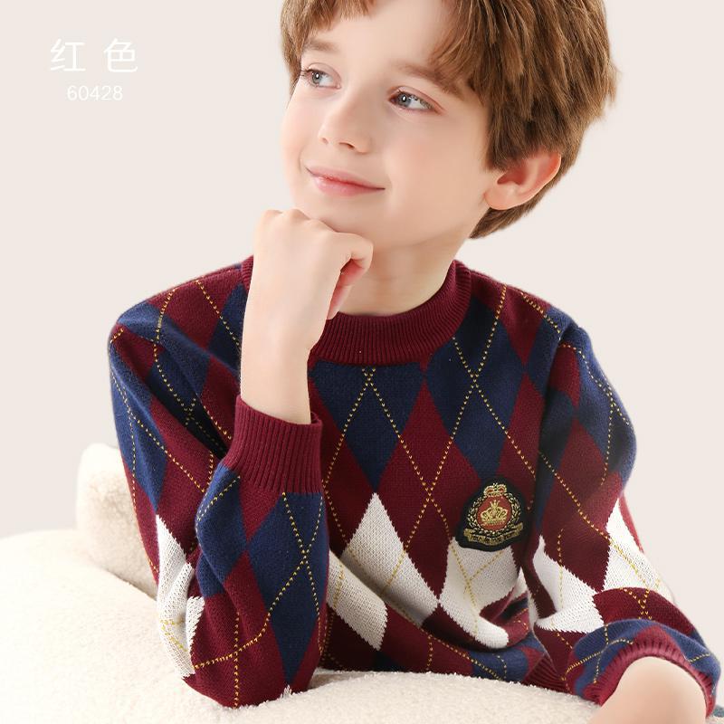 즉시 배송【다이아몬드 무늬 남아 스웨터】2025년 신상 아동용 따뜻한 니트웨어 큰 아이들 가을 겨울 의류스토어 가기