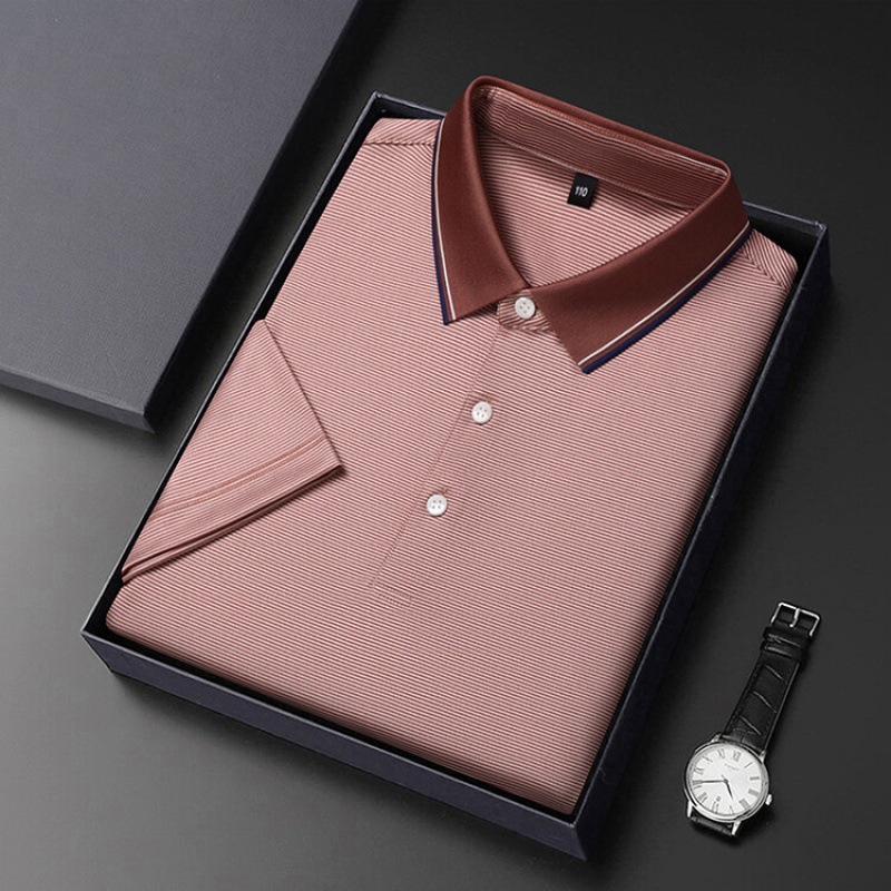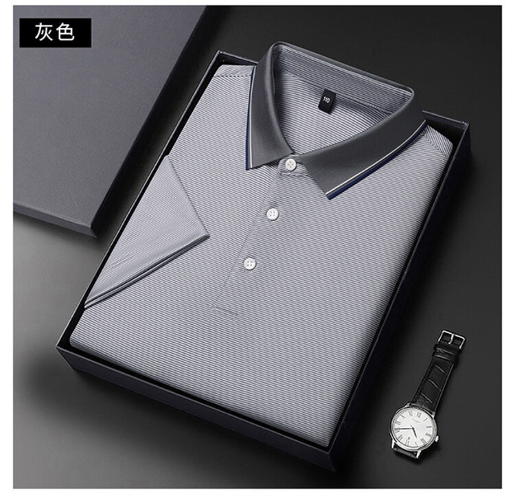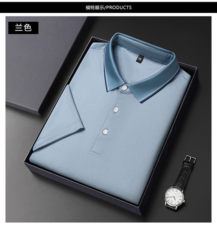 2023 뽕나무 실크 반팔 티셔츠 남자 여름 새 중년 라셀 반소매 T 비즈니스 캐주얼 남성 폴로 셔츠