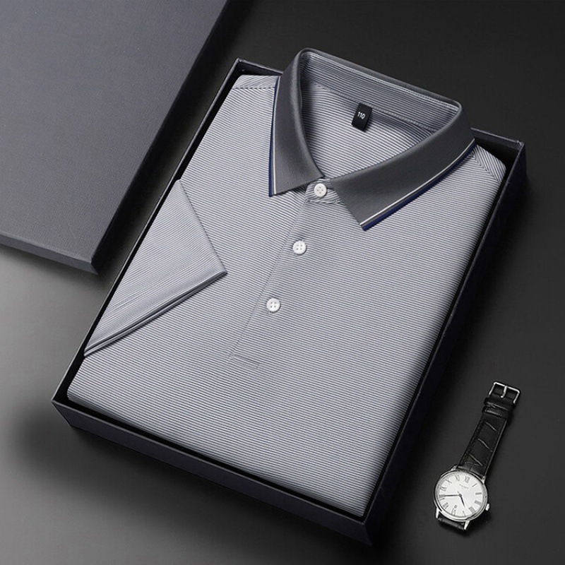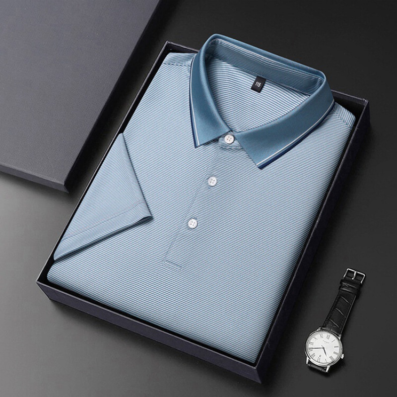 2023 뽕나무 실크 반팔 티셔츠 남자 여름 새 중년 라셀 반소매 T 비즈니스 캐주얼 남성 폴로 셔츠스토어 가기