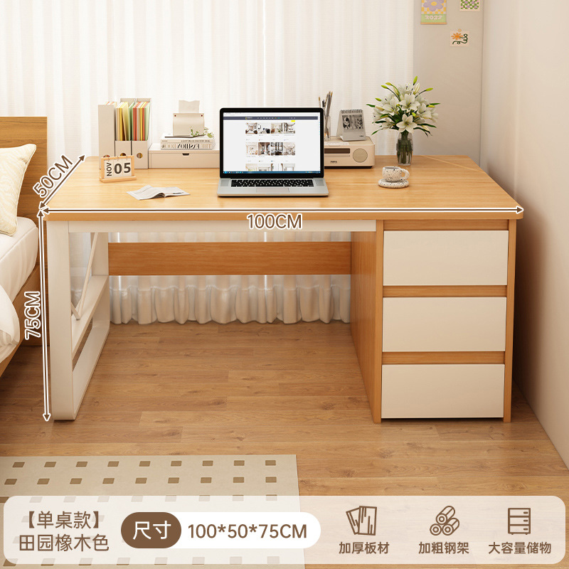 电脑桌台式家用卧室书桌学生学习写字桌子简易出租屋带抽屉办公桌