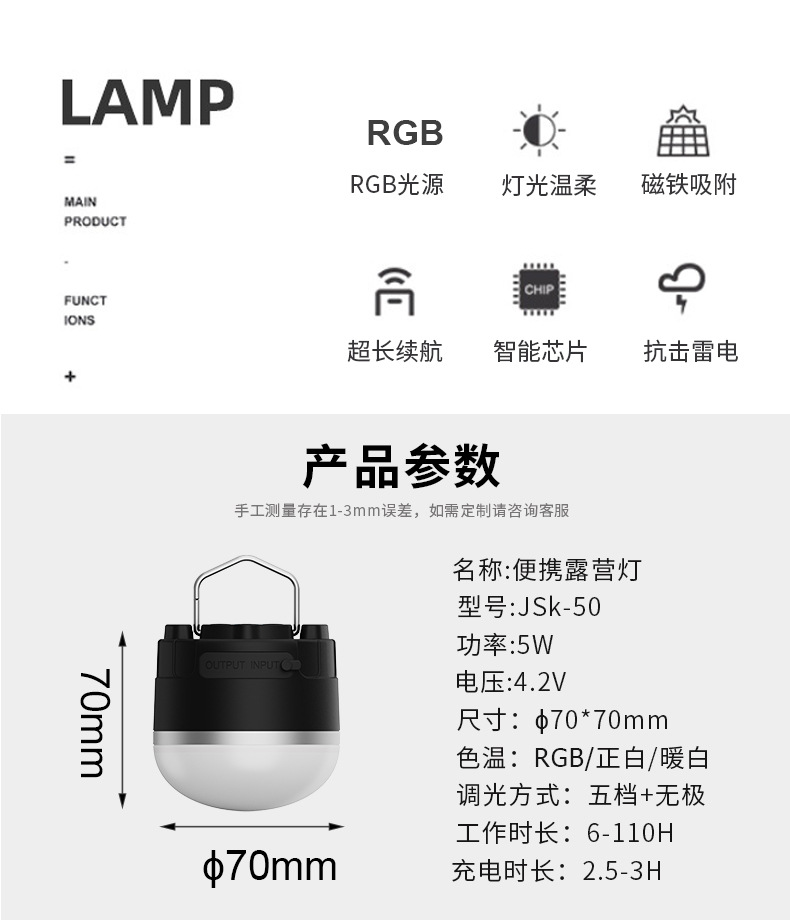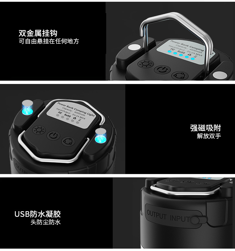 자기 매력 캠핑 조명 방수 캠프 조명 야외 캠핑 조명 다기능 USB 충전 텐트 조명 led 비상 조명