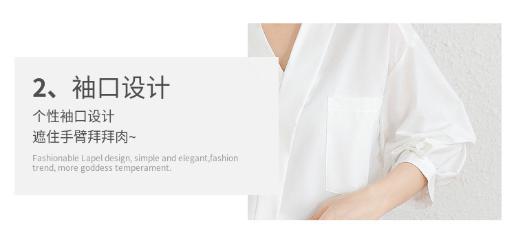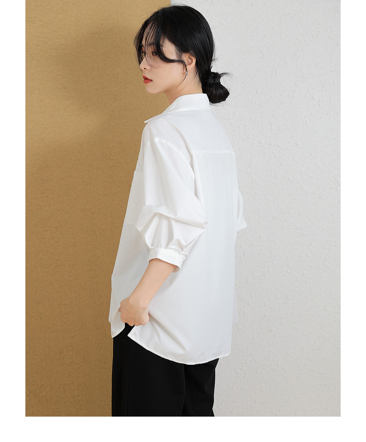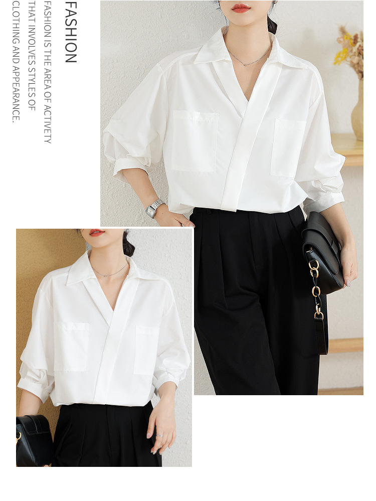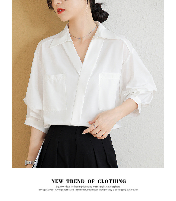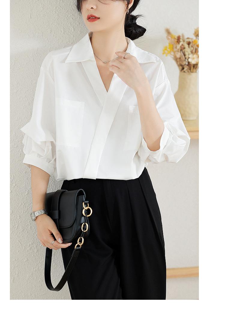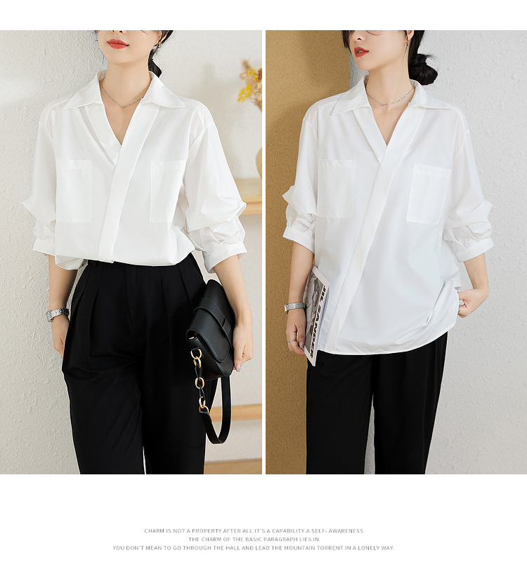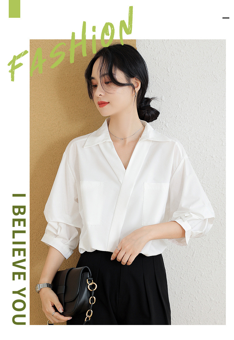 리얼 샷 화이트 세븐 포인트 슬리브 디자인 센스 셔츠 여성의 2023 여름 새로운 느슨한 슬리밍 얇은 빛 럭셔리 하이 엔드 탑