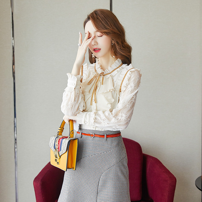 여성을위한 Daifa 꽃 무늬 쉬폰 셔츠 2025 봄 새로운 스타일 프릴 슬리밍 탑 세련된 기질 셔츠 서양식스토어 가기