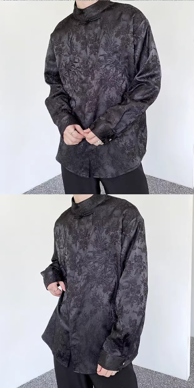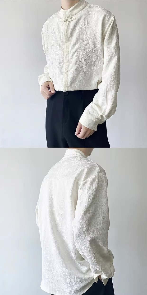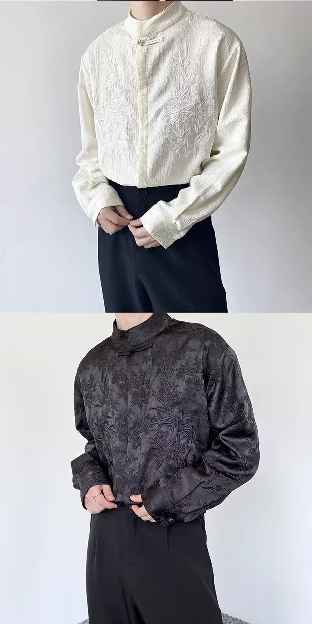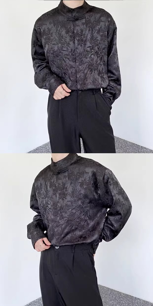 새로운 중국 스타일 Guofeng 셔츠 남자의 2024 새로운 봄과 가을 얇은 고급 수직 칼라 버클 자수 새로운 스타일 잘 생긴 긴 소매스토어 가기