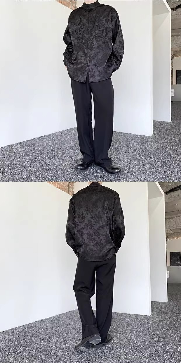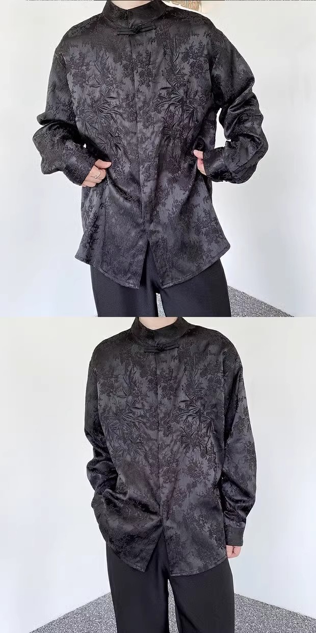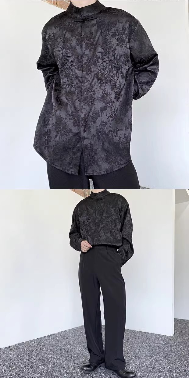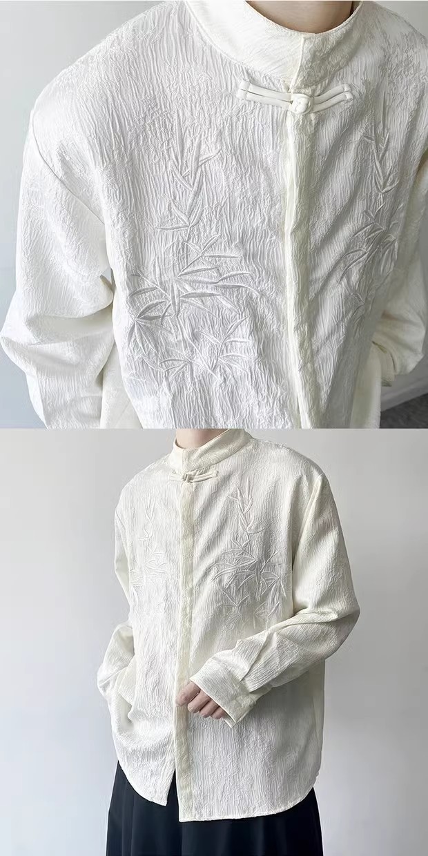 새로운 중국 스타일 Guofeng 셔츠 남자의 2024 새로운 봄과 가을 얇은 고급 수직 칼라 버클 자수 새로운 스타일 잘 생긴 긴 소매스토어 가기