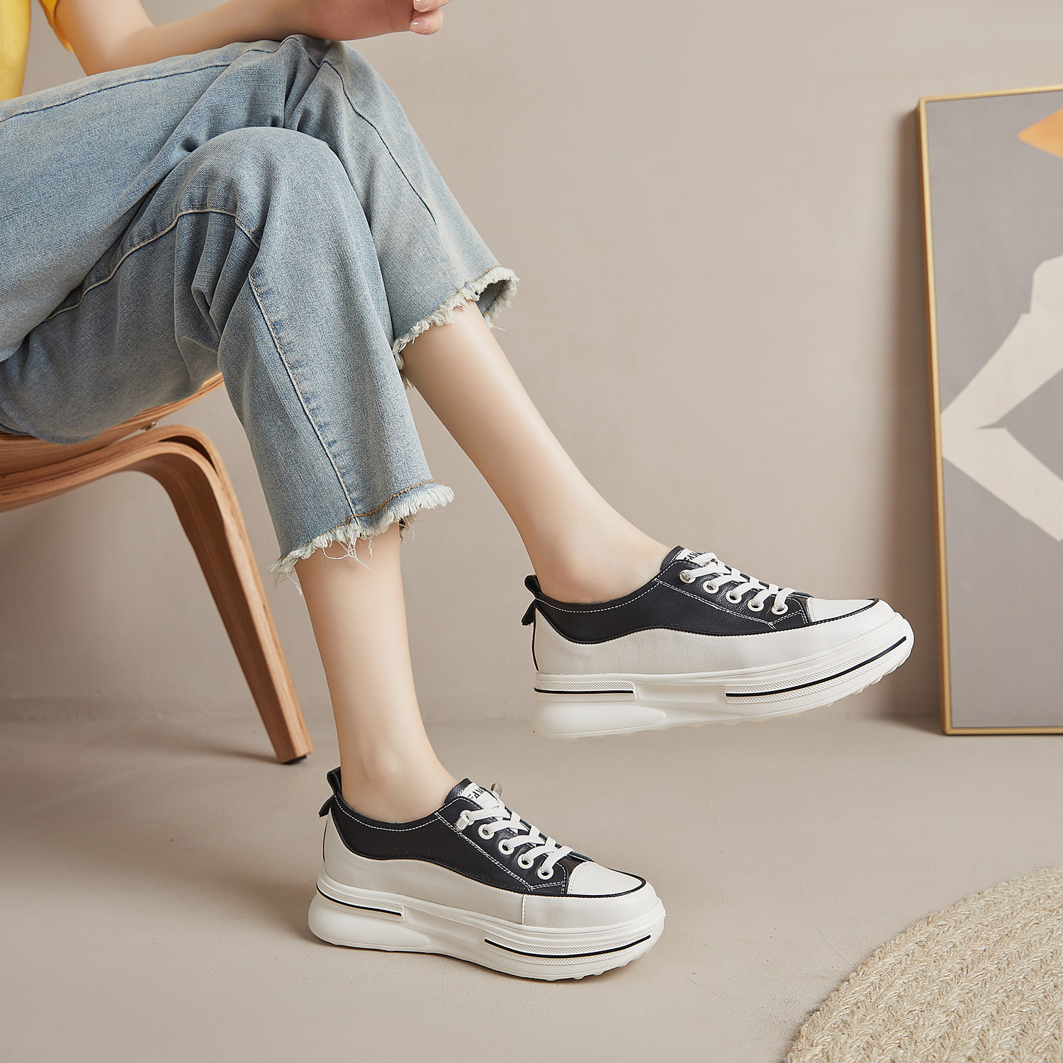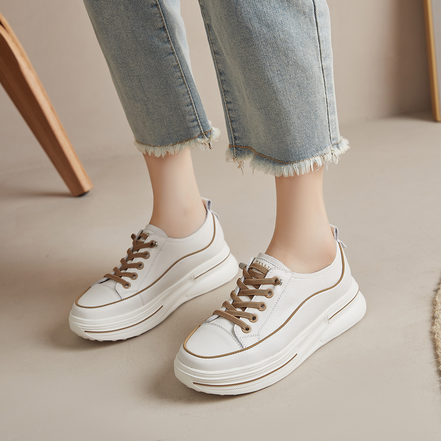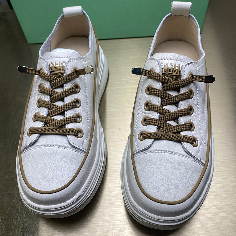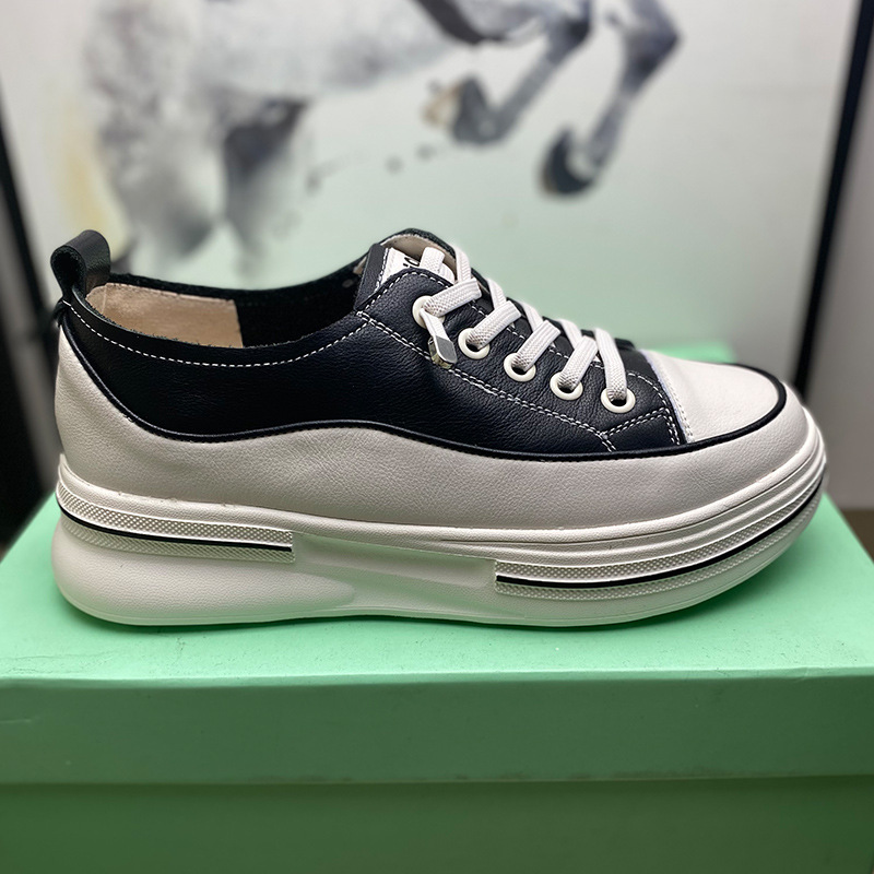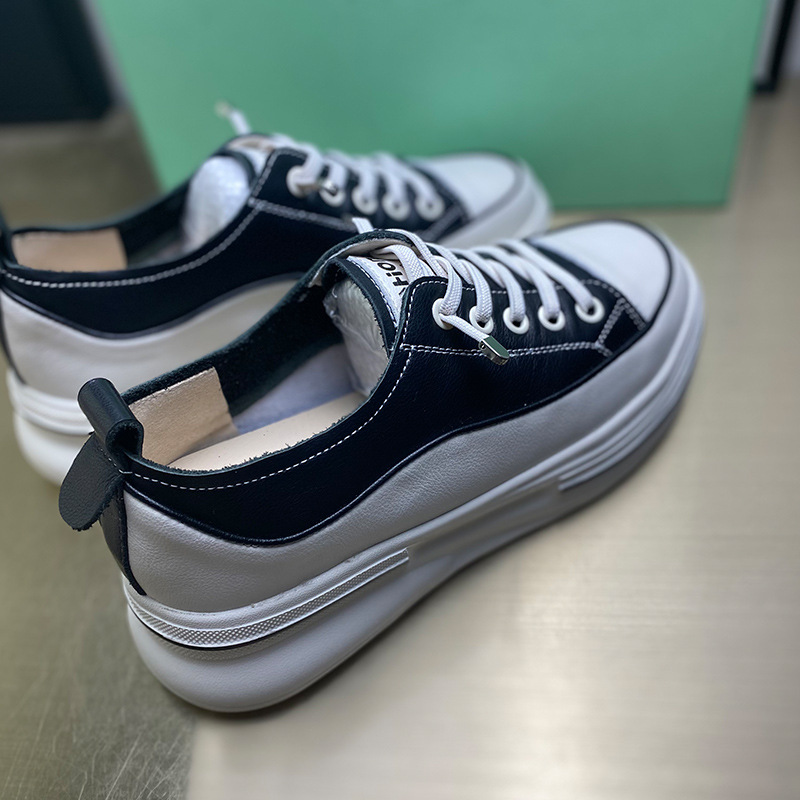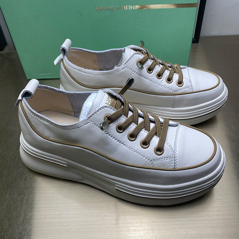 첫 번째 레이어 소 가죽 흰색 신발 여성의 2024 새로운 폭발 편안한 경량 플랫폼 플랫폼 스포츠 캐주얼 보드 신발 학생용스토어 가기