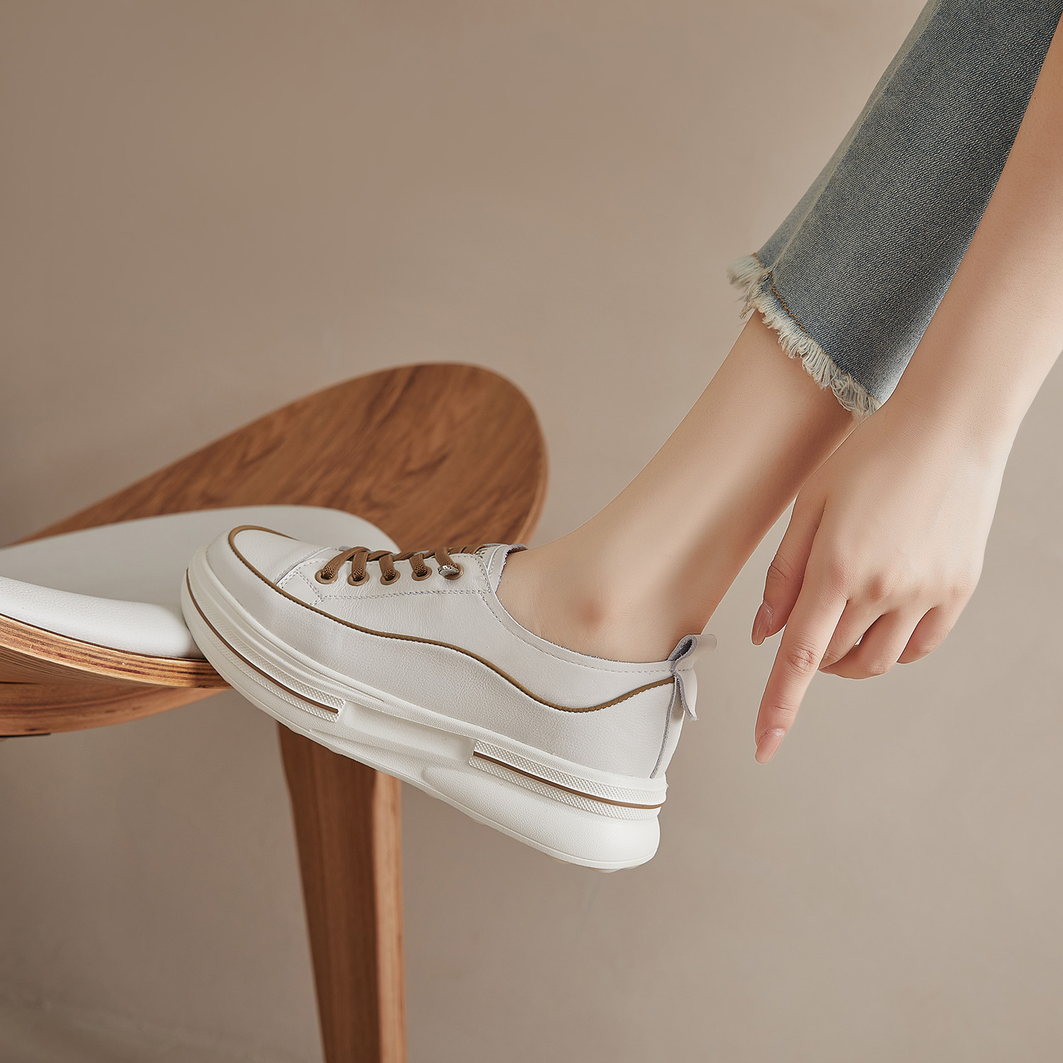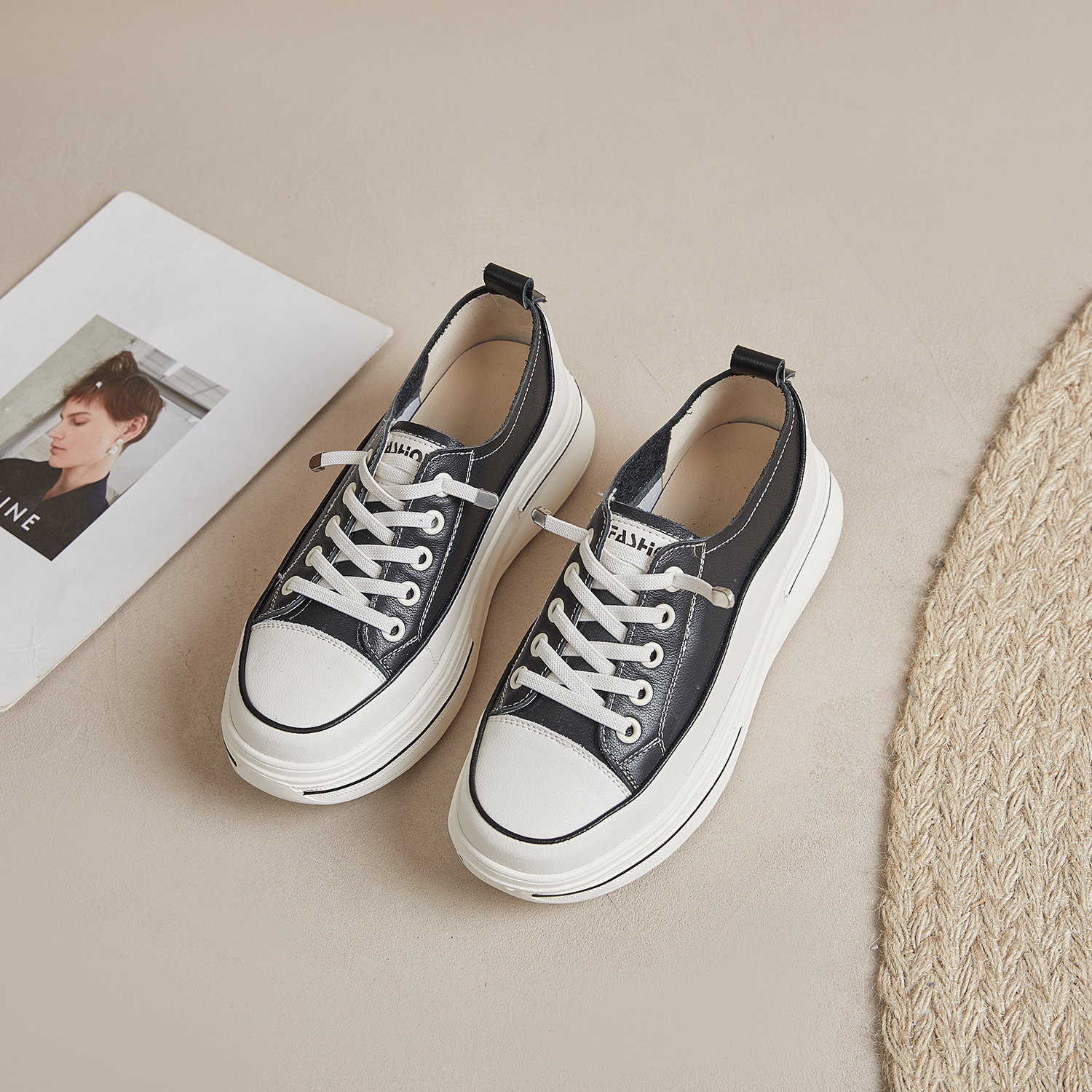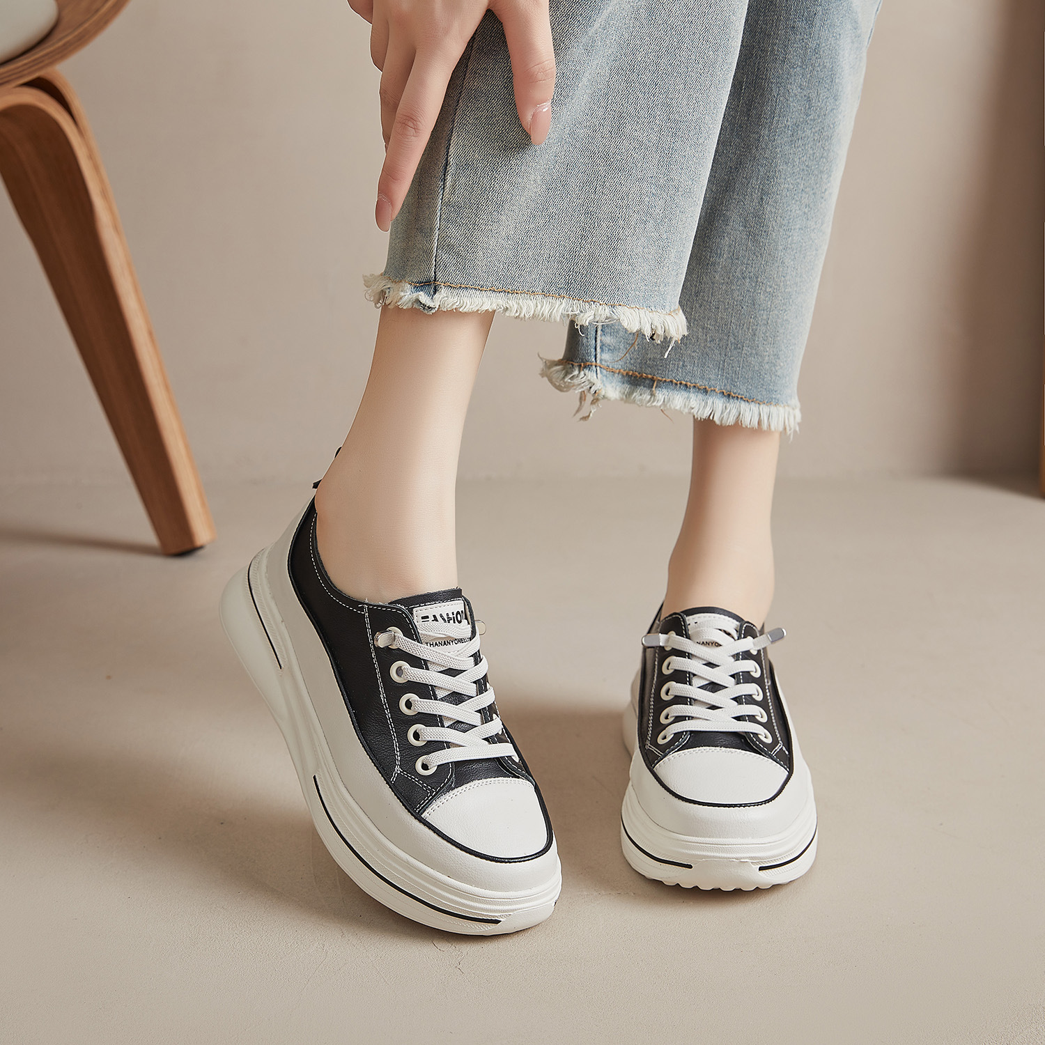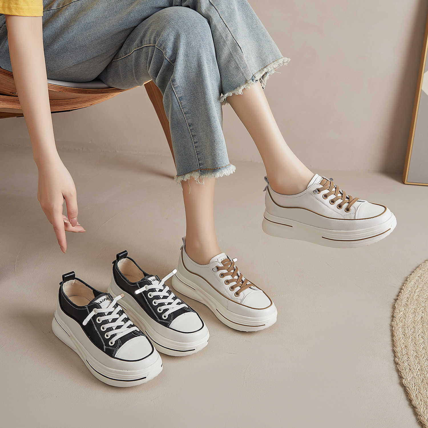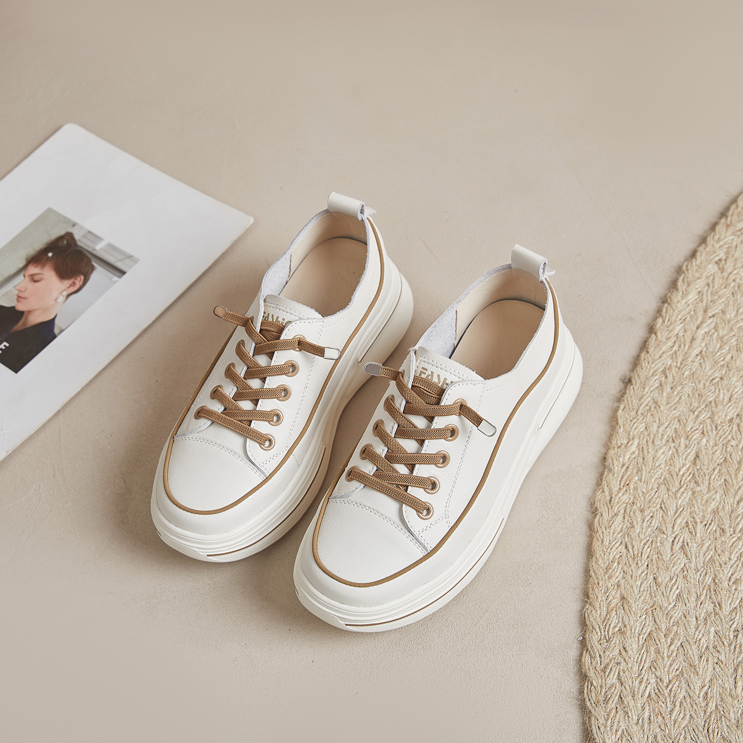 첫 번째 레이어 소 가죽 흰색 신발 여성의 2024 새로운 폭발 편안한 경량 플랫폼 플랫폼 스포츠 캐주얼 보드 신발 학생용스토어 가기