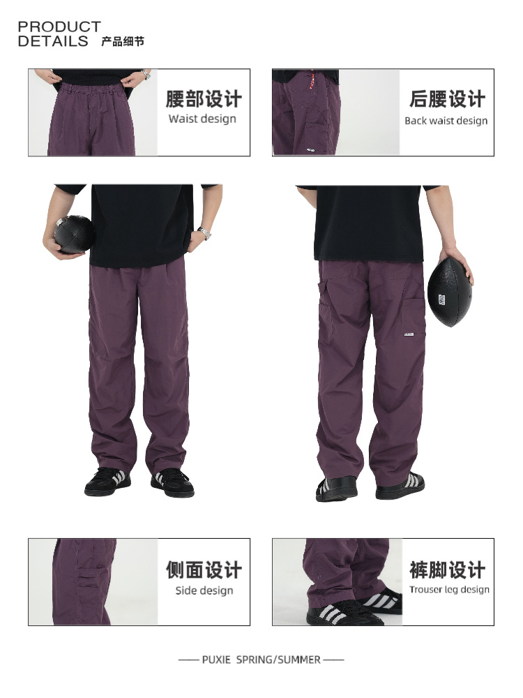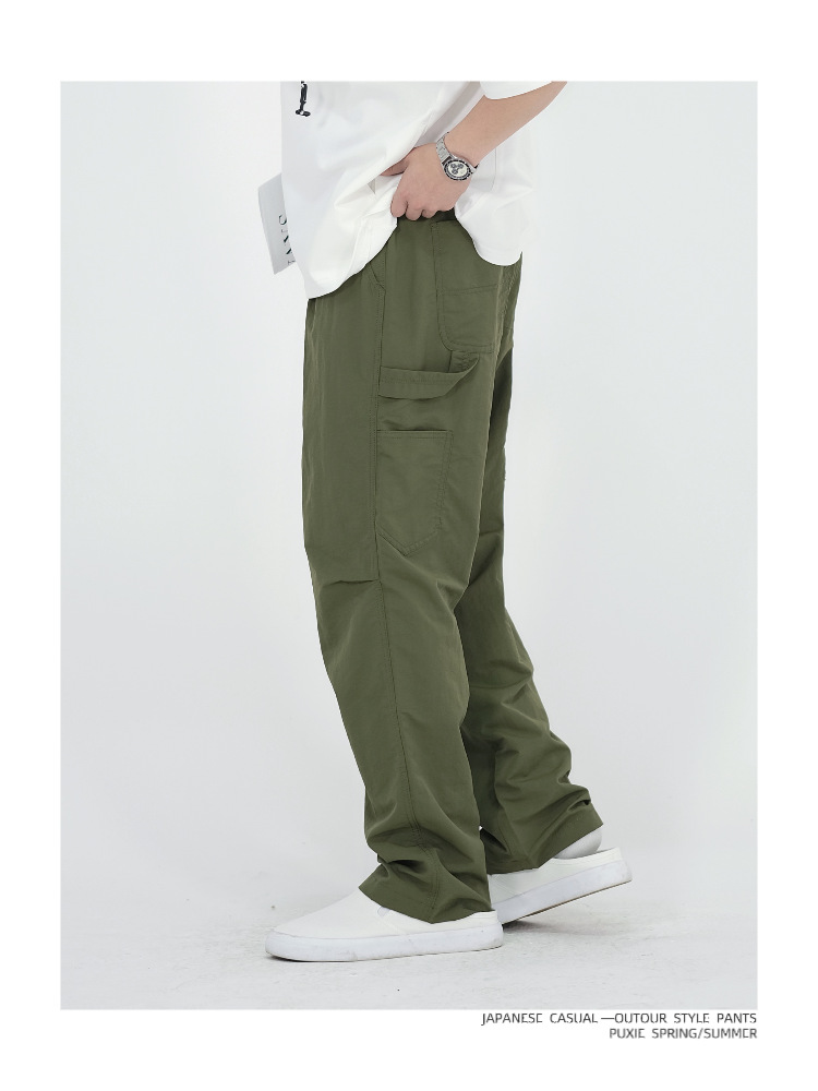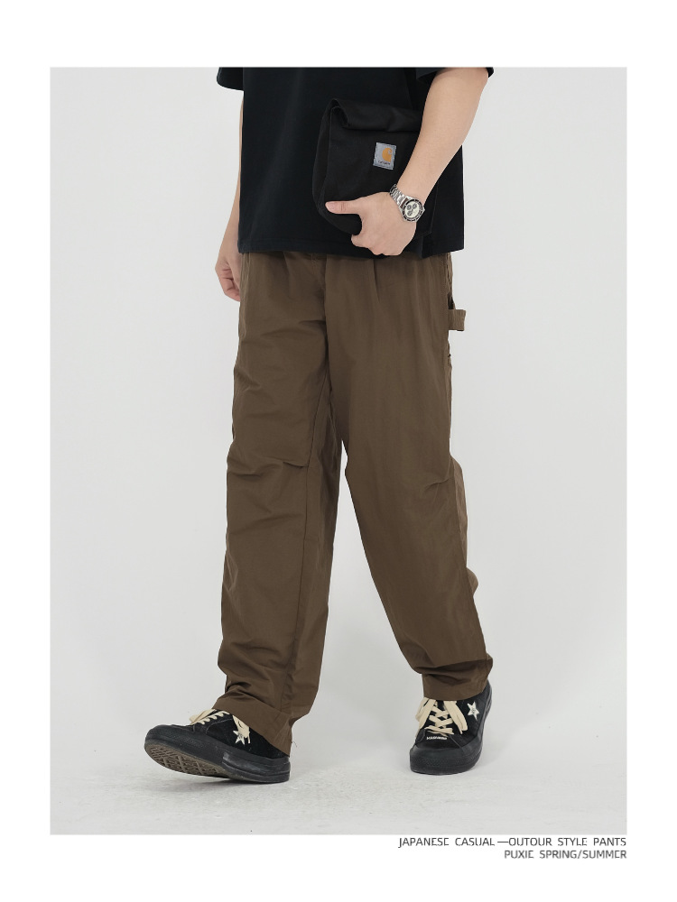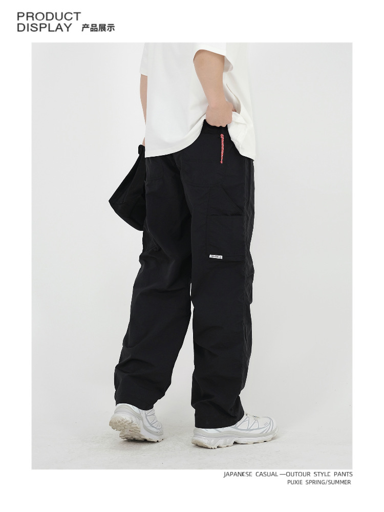 새로운 일본식 야외 조명 작업복 바지 남자의 봄과 여름 느슨한 통근 등산 낙하산 바지 스트레이트 캐주얼 바지
