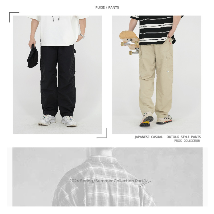 新款日系户外轻工装裤男春夏季宽松通勤登山伞兵裤直筒休闲裤子