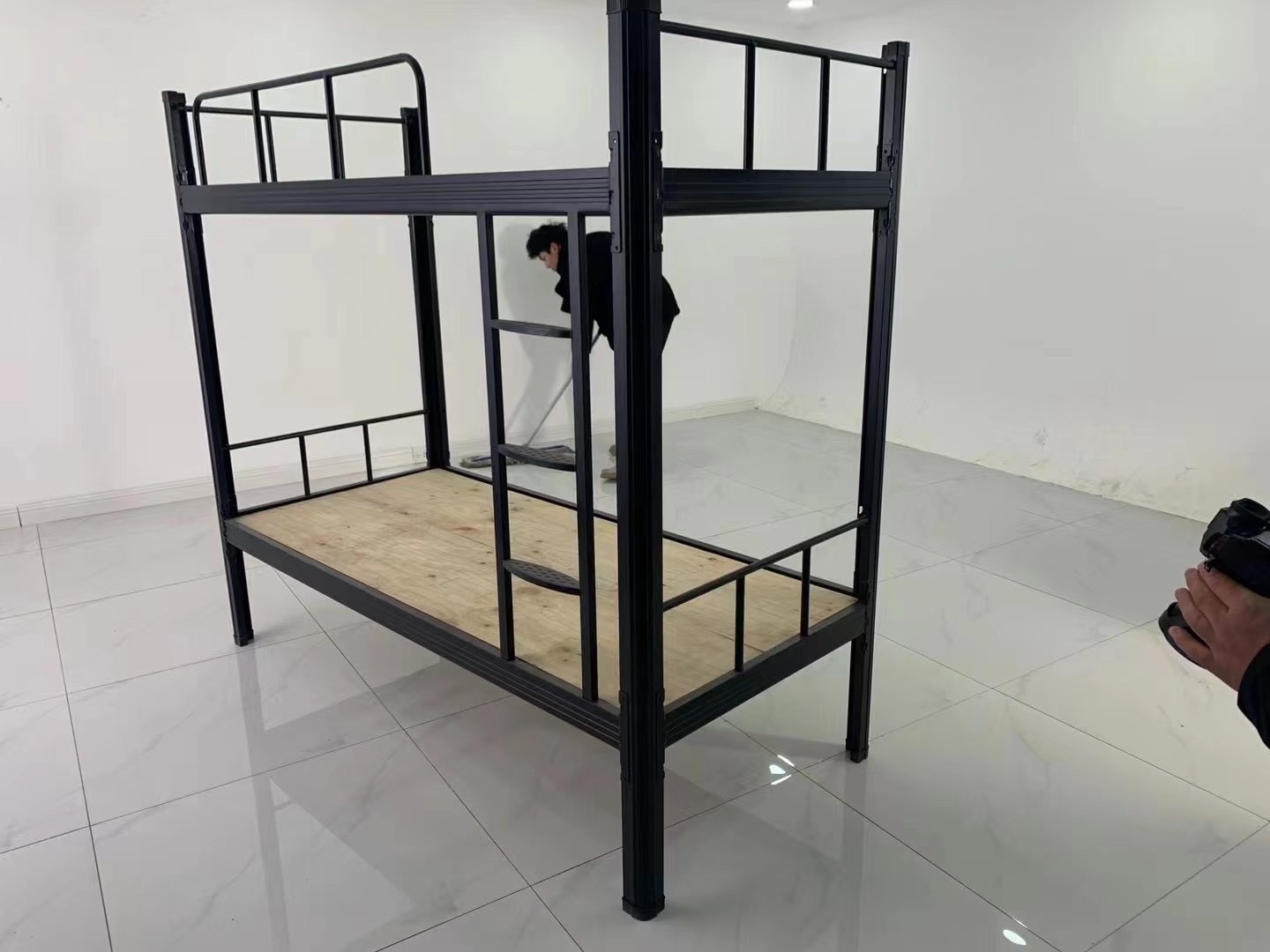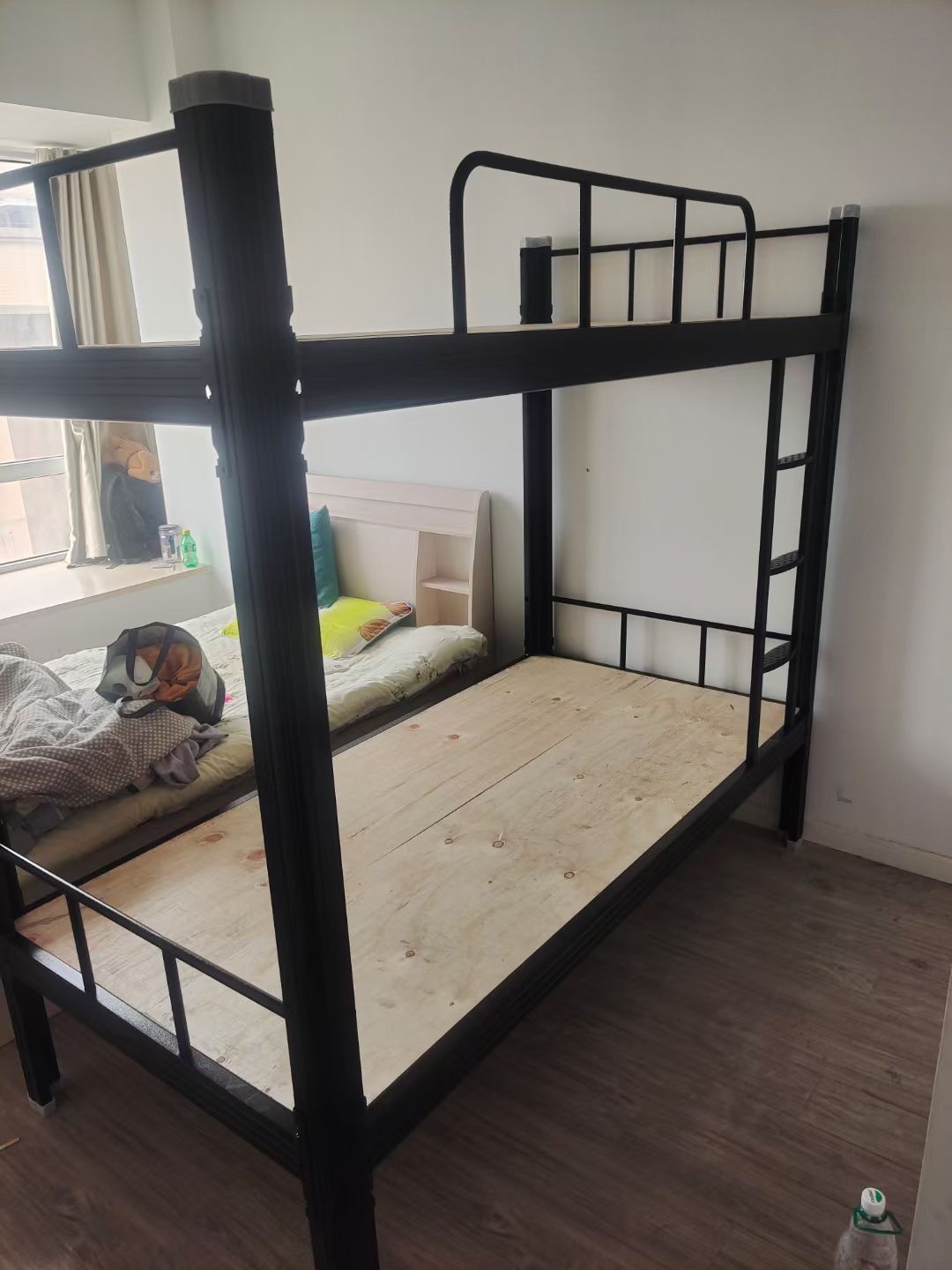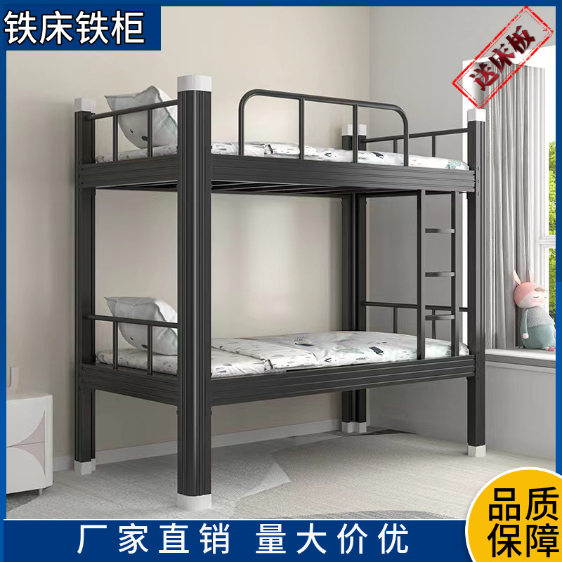 두꺼운 검은 색 이층 철제 침대 높이 및 낮은 이층 침대 프로파일 침대 분해 및 조립 상부 및 하부 침대 침대 매트리스 아파트 기숙사 침대스토어 가기