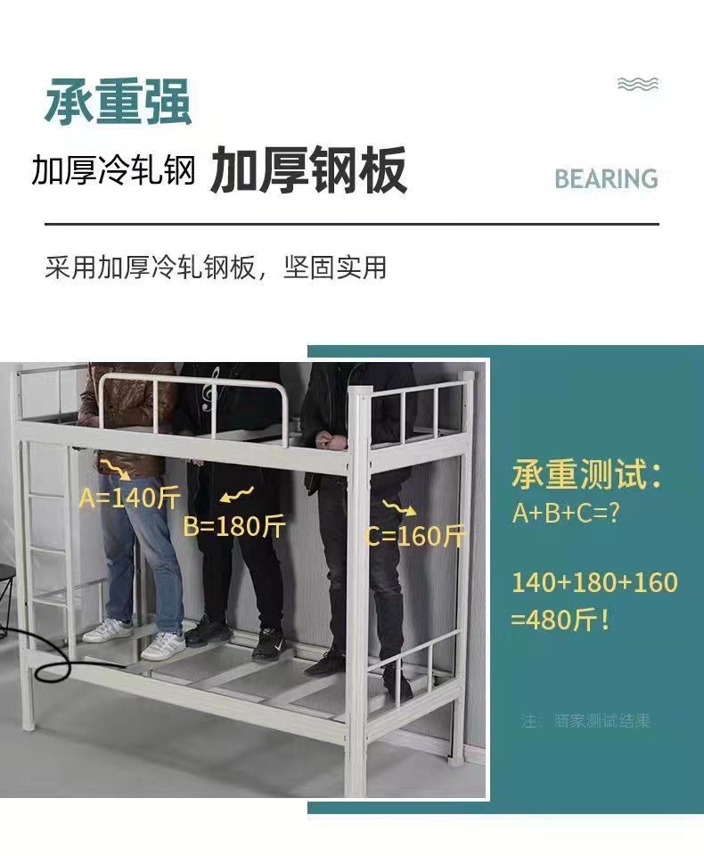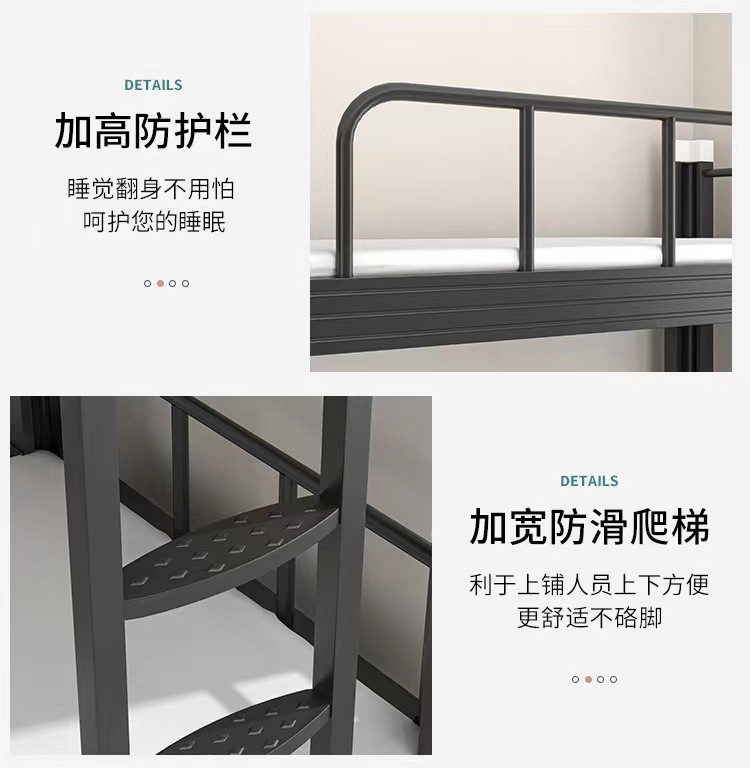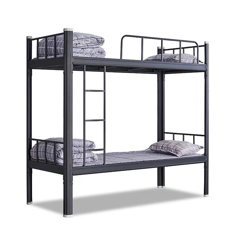 두꺼운 검은 색 이층 철제 침대 높이 및 낮은 이층 침대 프로파일 침대 분해 및 조립 상부 및 하부 침대 침대 매트리스 아파트 기숙사 침대