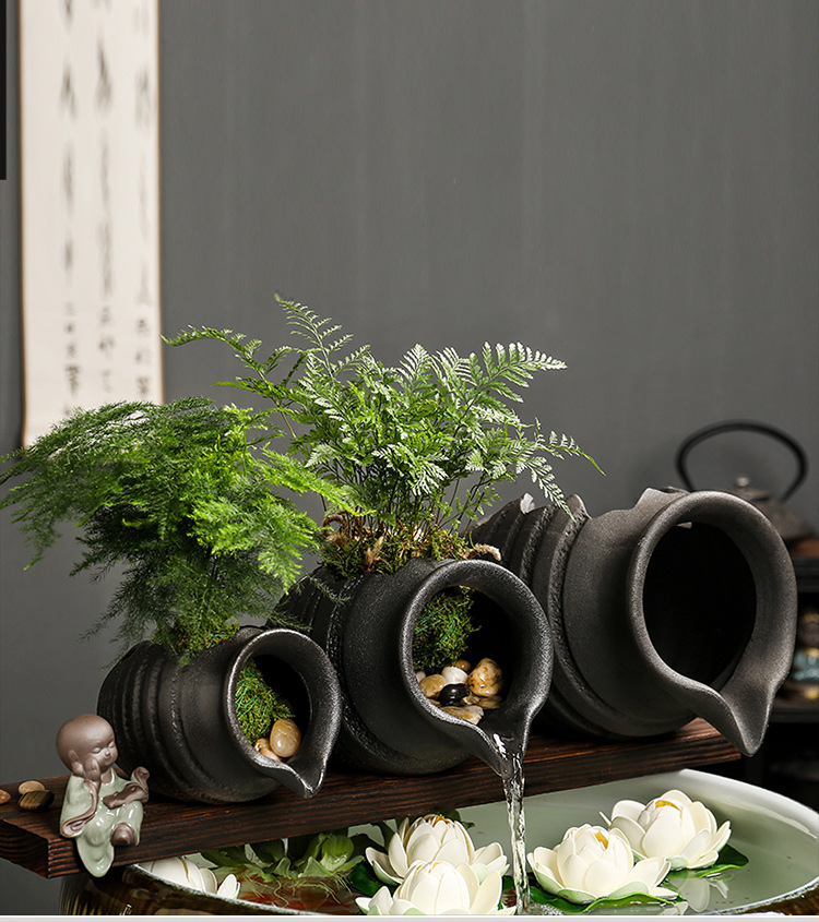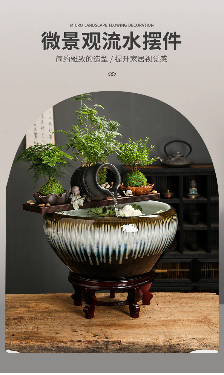 순환 워터 필터 액세서리 생태 탱크 도자기 냄비 고대 방법 물고기 증가 산소 정원 풍경 분수 장식