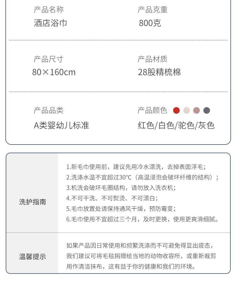 • 목욕타월/80cm*160cm/800g