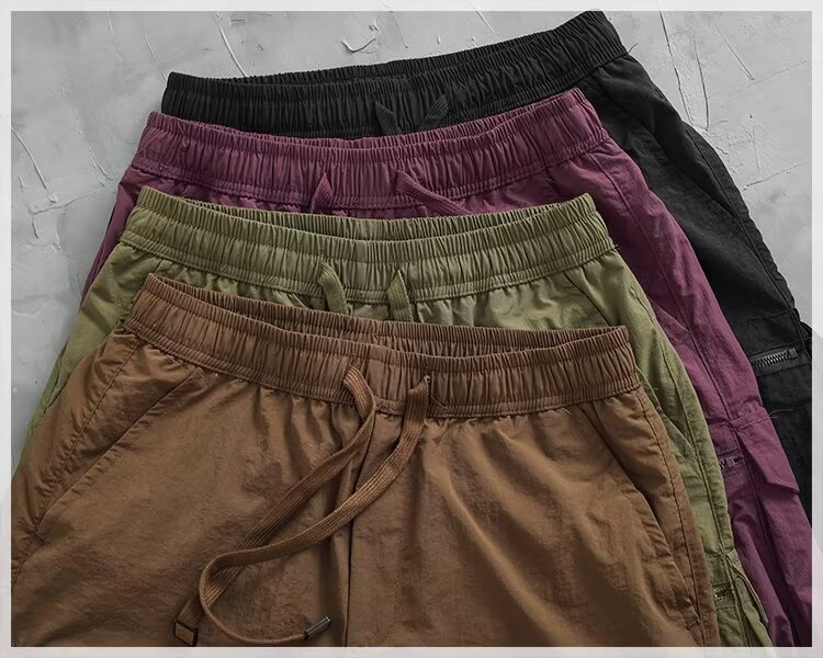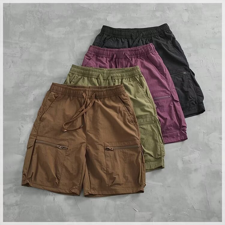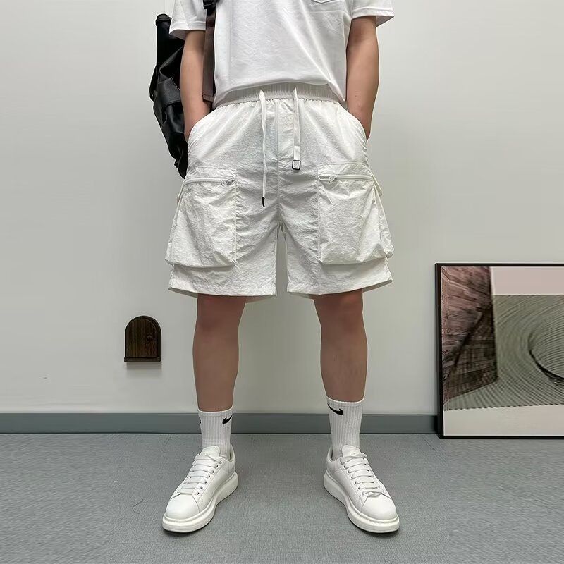 2024 홍콩 스타일, 트렌디 한 레트로 올매치 루즈 스트레이트 툴링 반바지 캐주얼 반바지 트렌디 남성