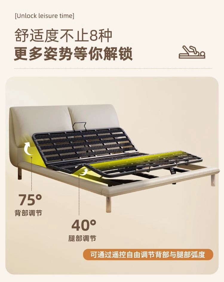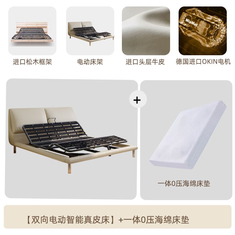• 전기 지능형 가죽 침대 통합 0 압력 스폰지 매트리스