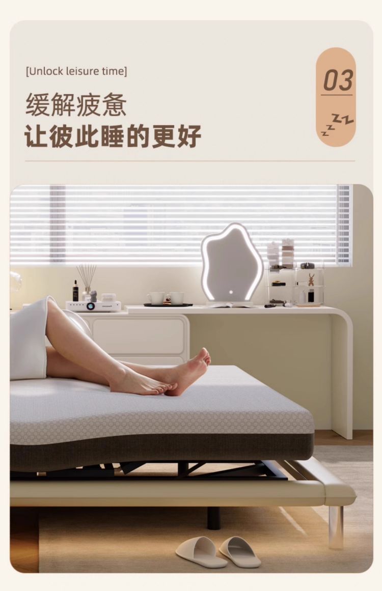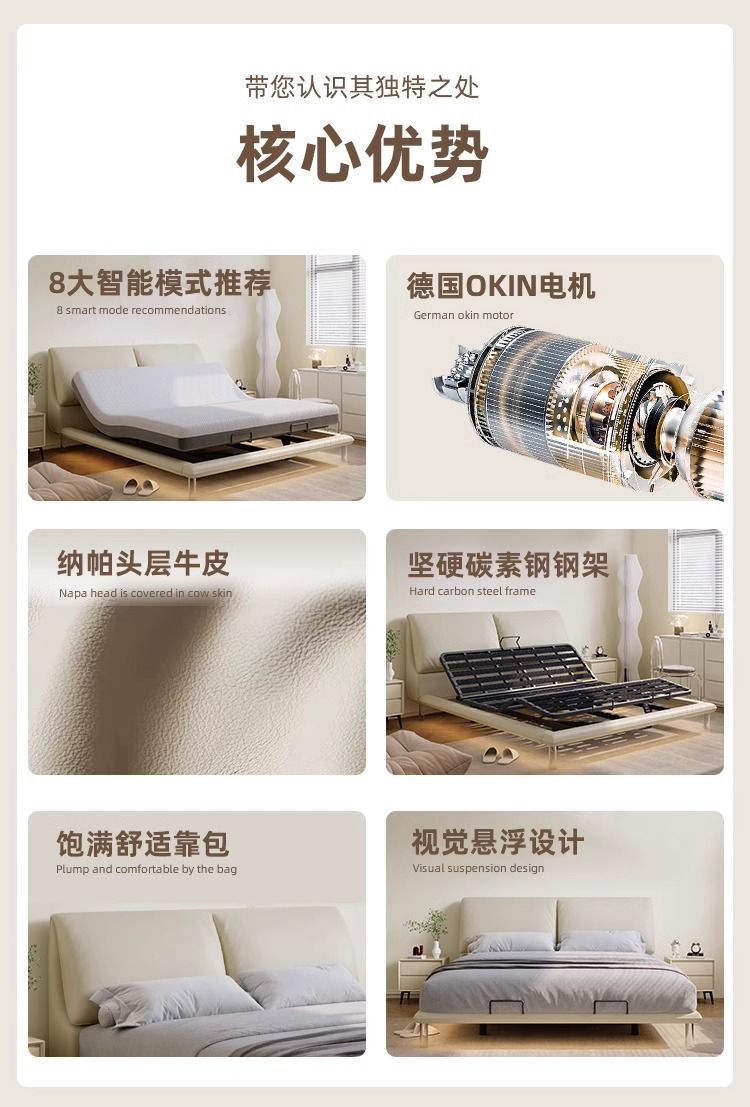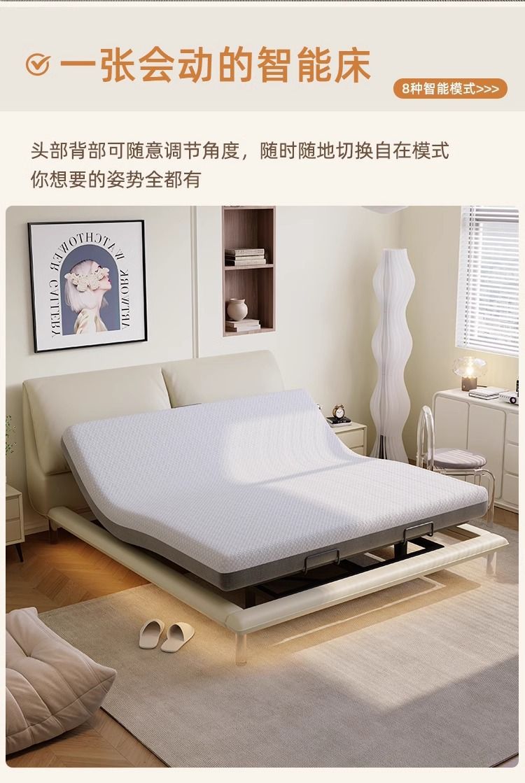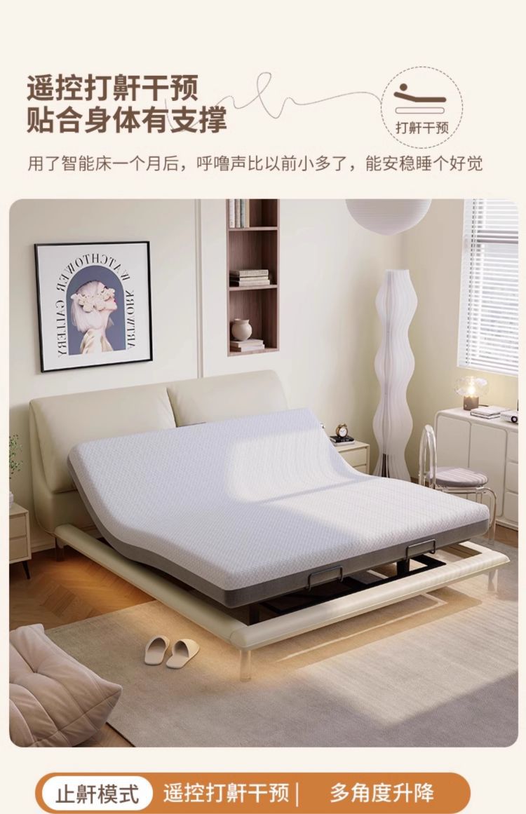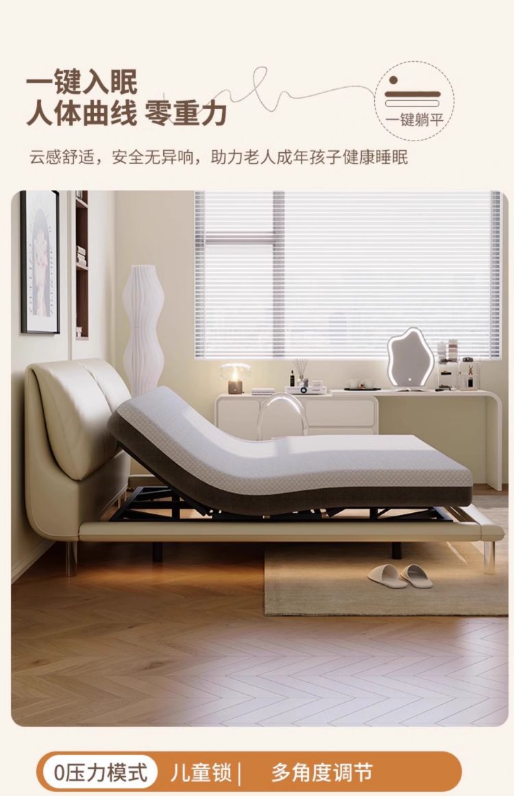 이탈리아 서스펜션 전기 침대 침실 현대 스마트 리프팅 코끼리 귀 다기능 제로 중력 0 압력 부스터 침대스토어 가기