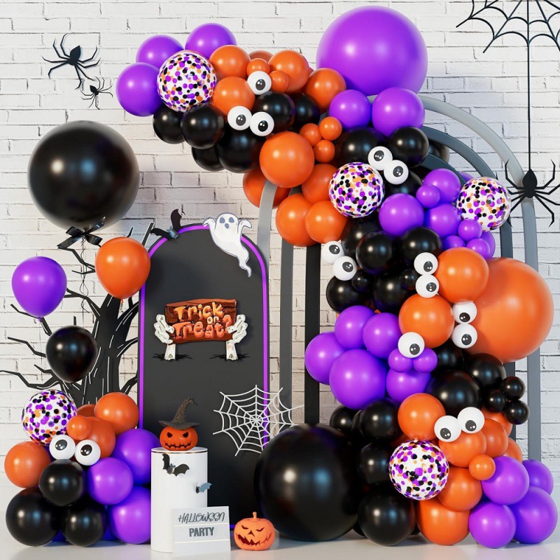 140PCS 할로윈 풍선 아치 세트 안경 인쇄 풍선 할로윈 파티 배경 장식스토어 가기