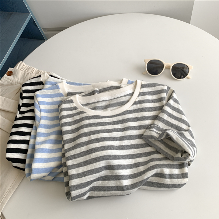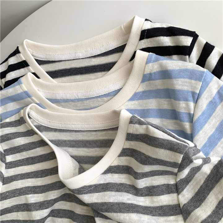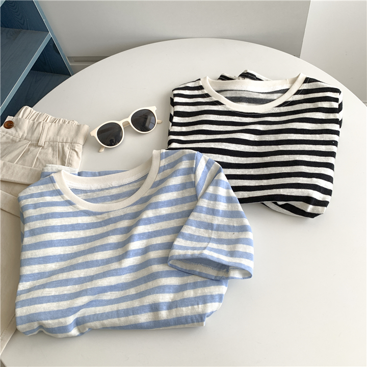 스트라이프 코튼 린넨 질감의 여성용 반팔 티셔츠 2026년 신상 여름 다용도 반팔 라운드넥 한국 스타일 얇은 상의
