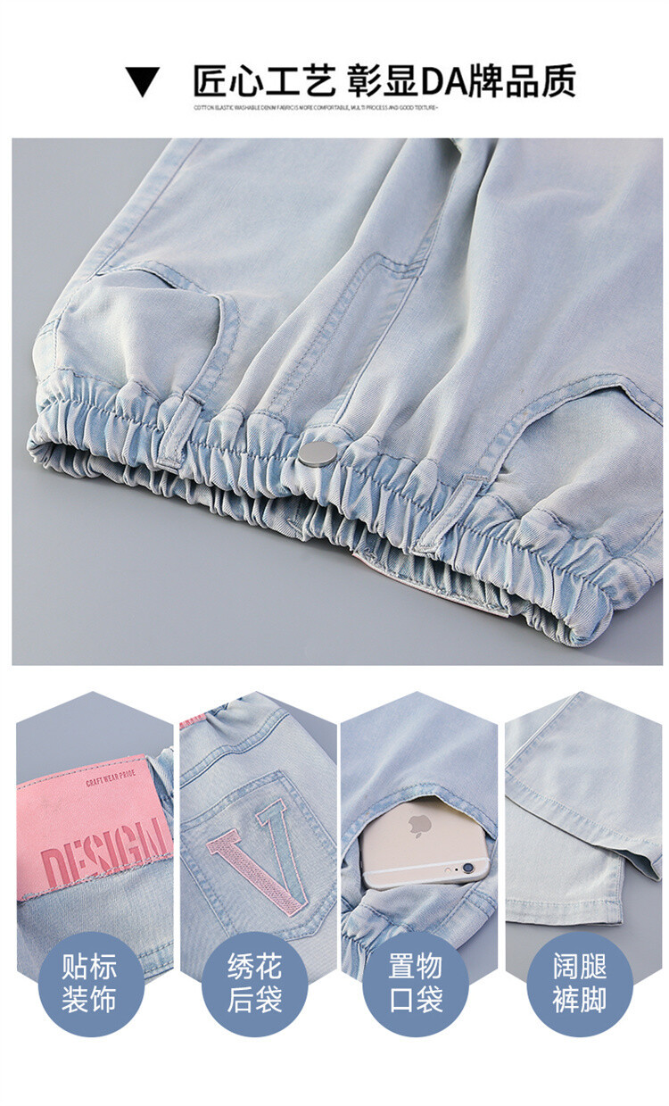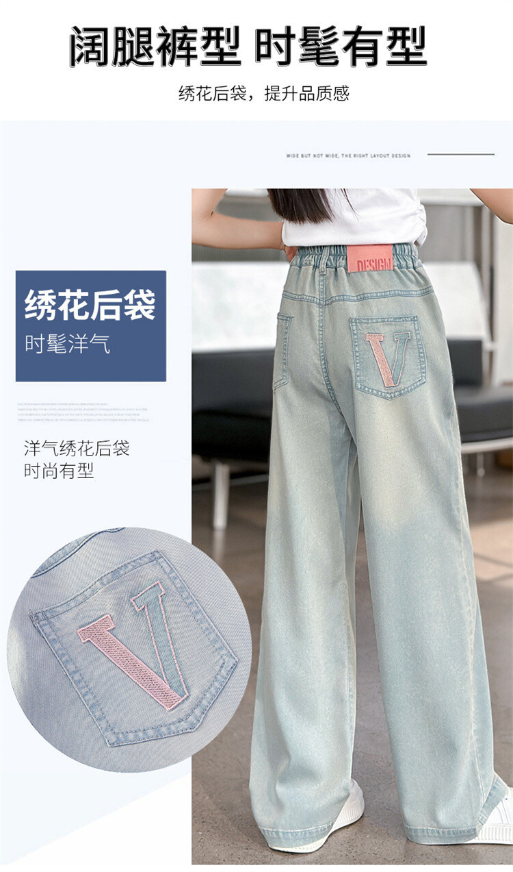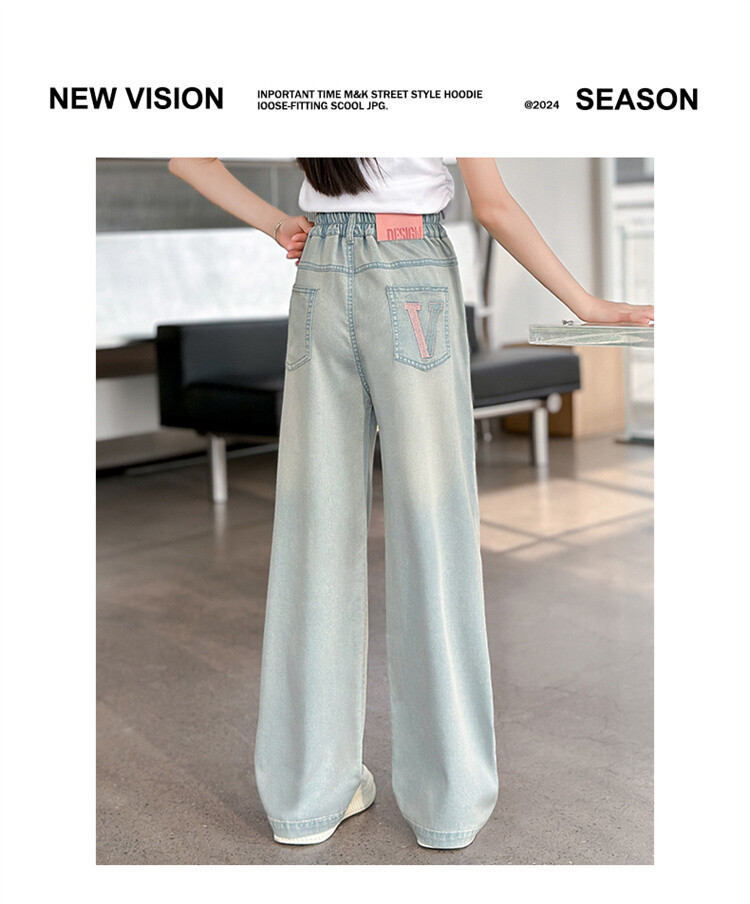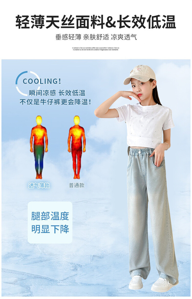 소녀의 바지 여름 얇은 2024 새로운 어린이 스트레이트 와이드 다리 바지 여름 소녀의 큰 어린이 텐셀 청바지스토어 가기