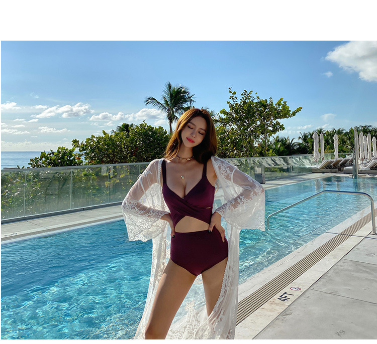 한국식 비키니 인즈 벨리 덮은 슬림 모양의 온천 휴가 수영 세트