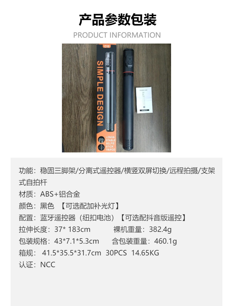 C10 블루투스 통합 휴대 전화 브래킷 알루미늄 합금 원격 제어 라이브 셀카 vlog 다기능 삼각대스토어 가기