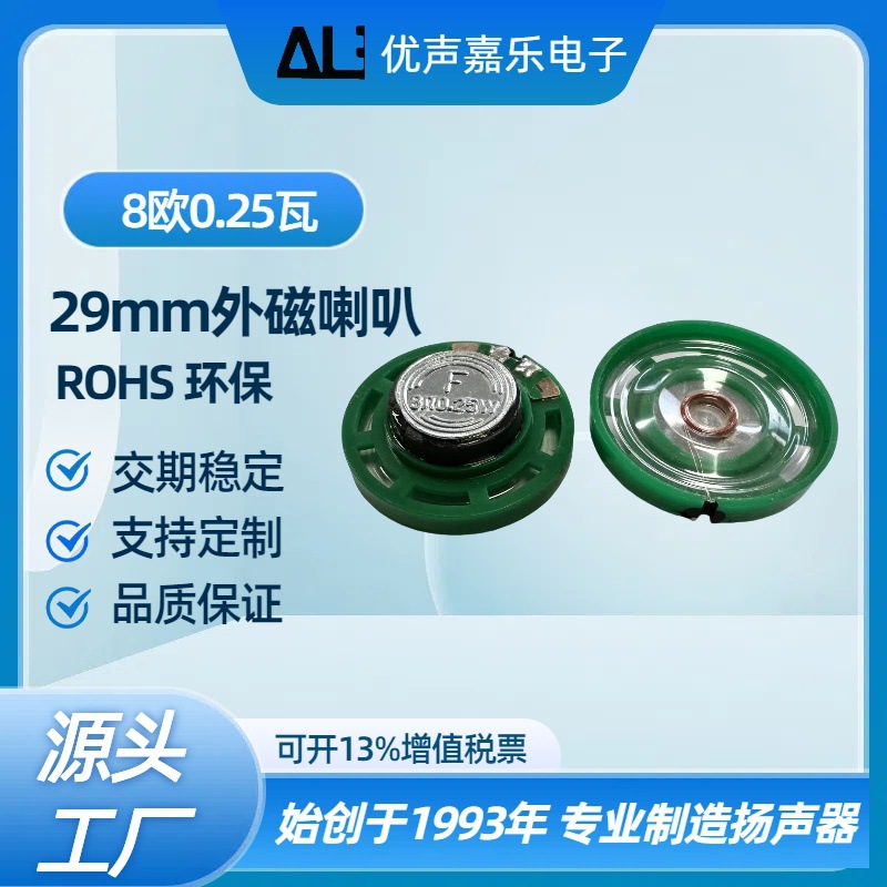 EU ROHS 초인종 스피커를 통해 재고 29mm 환경 보호 경적 플라스틱 쉘 마그네틱 8 옴 0.25w 와트스토어 가기