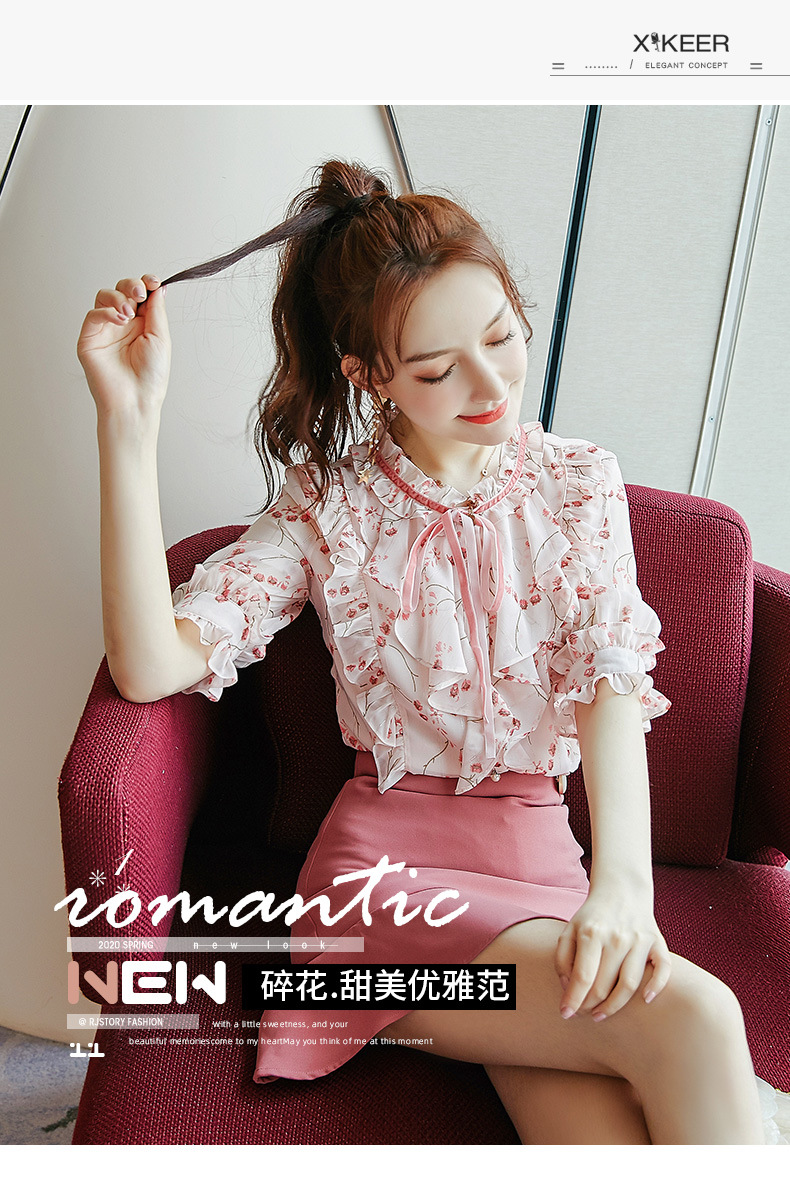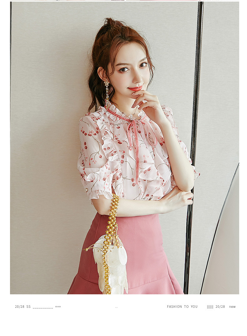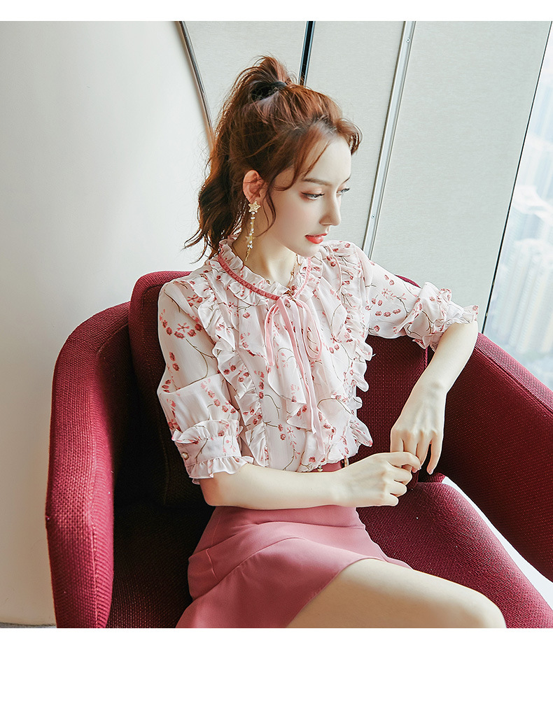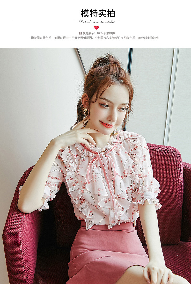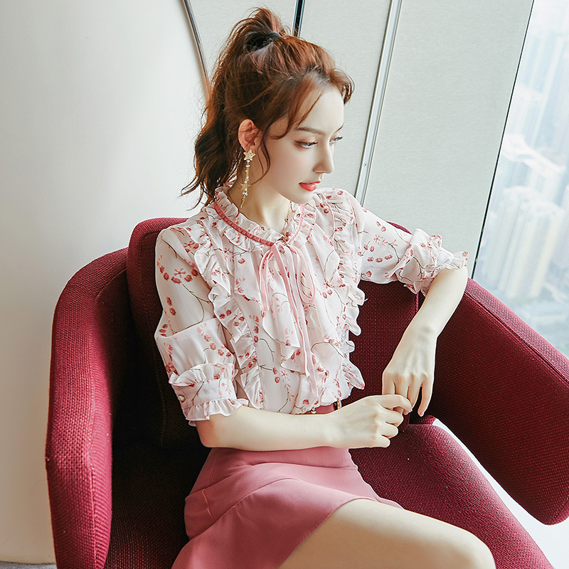 여성을위한 Daifa 꽃 무늬 쉬폰 셔츠 2024 여름 새 스타일 프릴 슬리밍 탑 세련된 기질 셔츠 통근스토어 가기