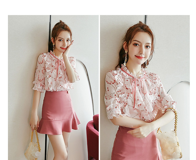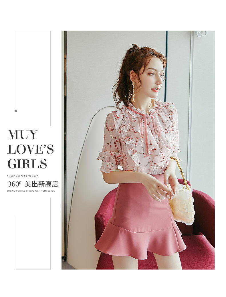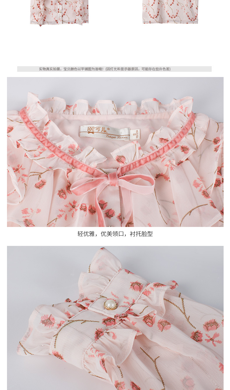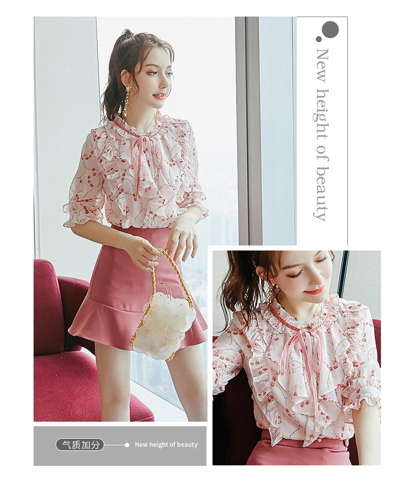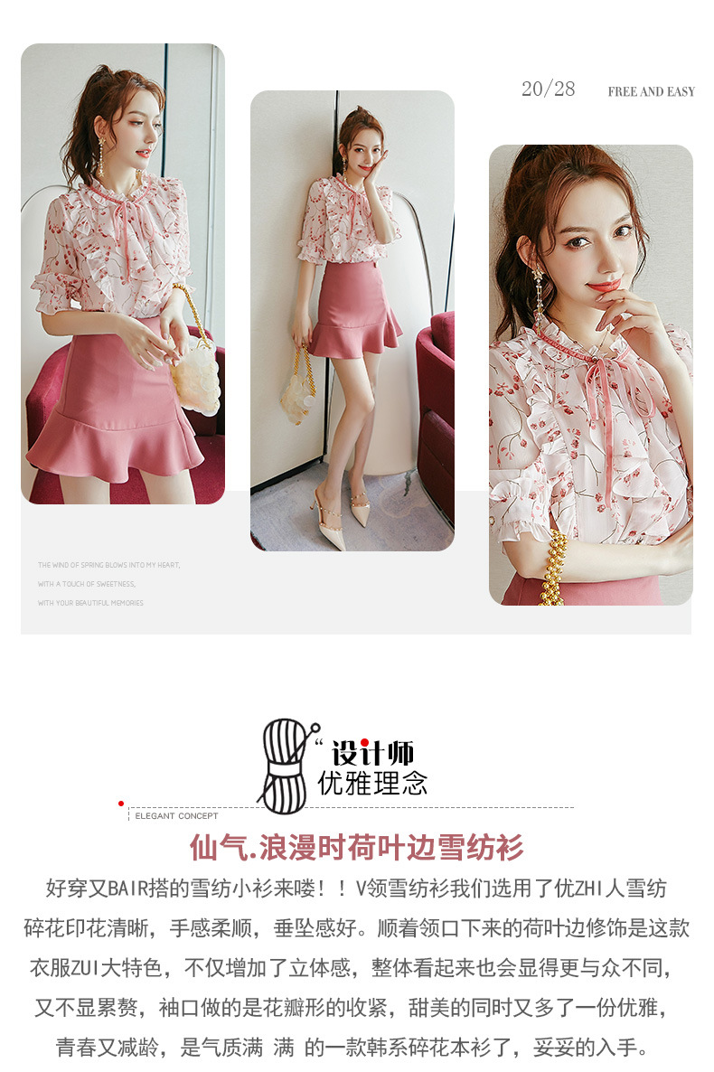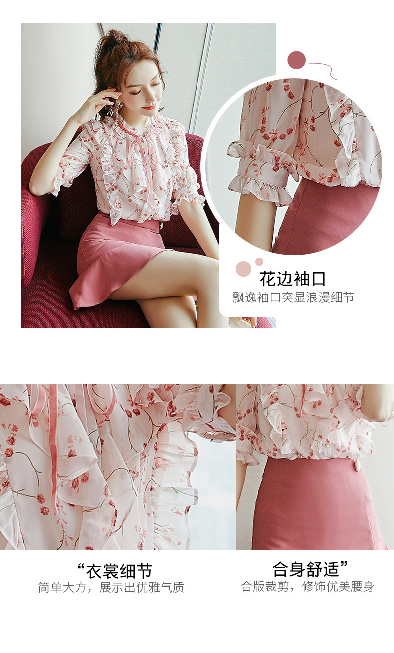 여성을위한 Daifa 꽃 무늬 쉬폰 셔츠 2024 여름 새 스타일 프릴 슬리밍 탑 세련된 기질 셔츠 통근스토어 가기