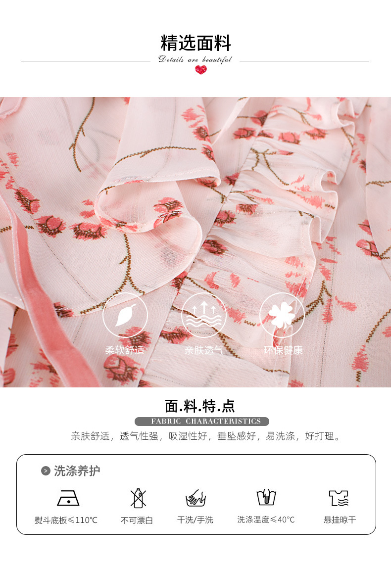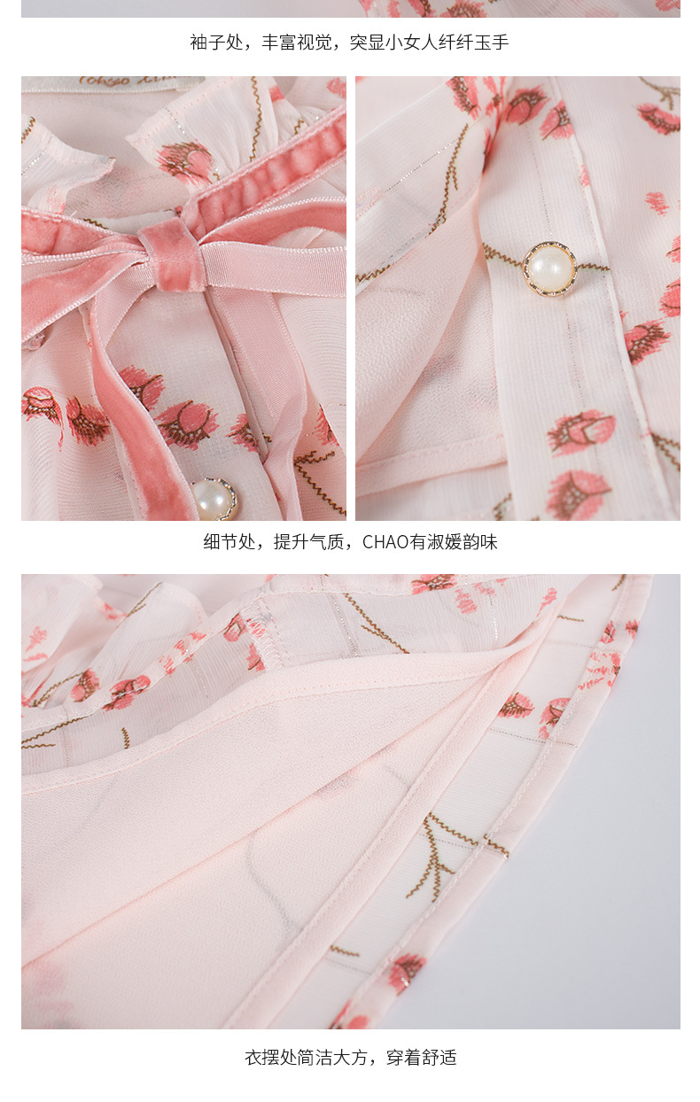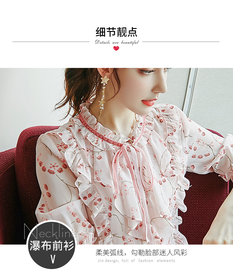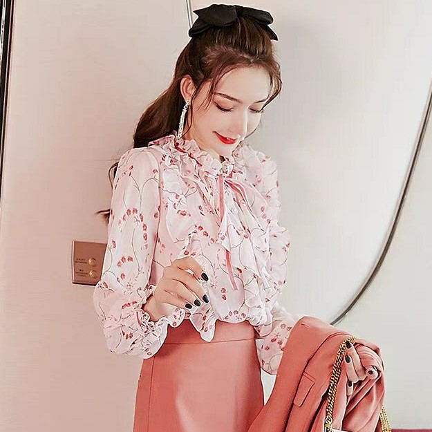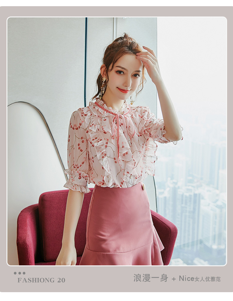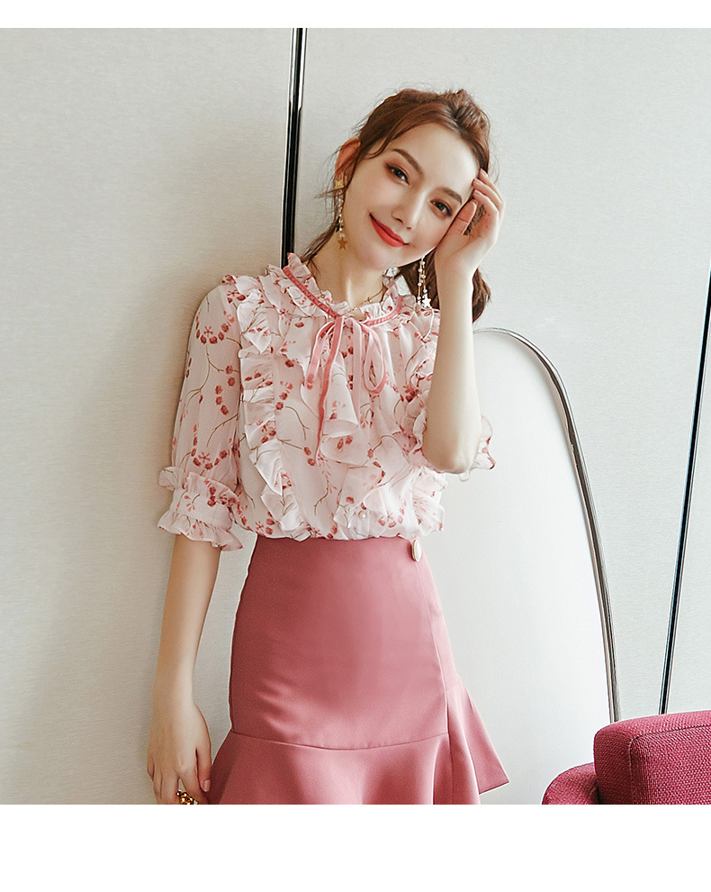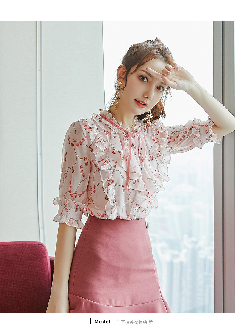 여성을위한 Daifa 꽃 무늬 쉬폰 셔츠 2024 여름 새 스타일 프릴 슬리밍 탑 세련된 기질 셔츠 통근